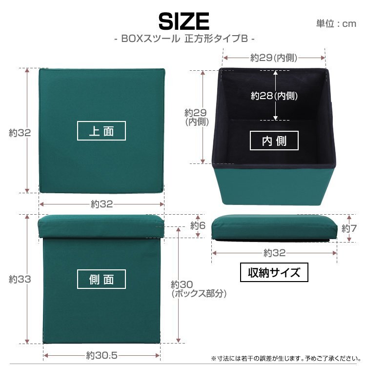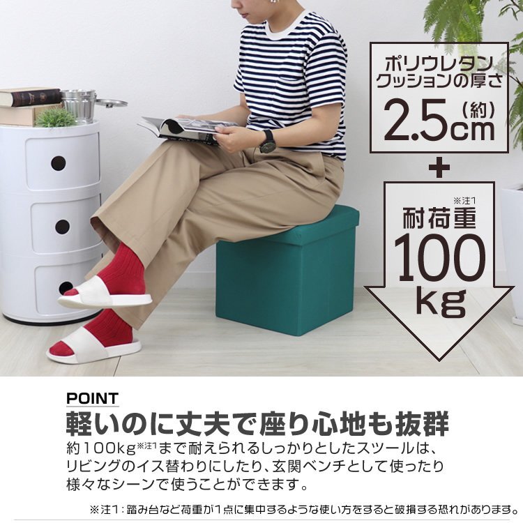 シンプルな箱型のデザインなのでいろんな場所、用途で使えます。 本体内部にはたっぷりの収納スペース。 使わないときはコンパクトに折りたたんでおけます。 子供のおもちゃ収納や、普段の収納スペース、ゲスト用の簡易スツールとしてお使いいただけます。 組立てはカンタン! 折畳まれたボックス部分を広げて底部に板を敷いて上からフタを被せるだけ! 耐荷重100kgと、大人が座っても大丈夫なくらい頑丈です♪ 【商品仕様】 カラー: ミルキーベージュ 形状:四角形 サイズ(約):幅310×奥行き310×高さ330mm 材質:600Dオックスフォード布、MDF 重量(約):2kg 耐荷重(約):100kg 折りたたみ可能 【商品内容】 スツールボックス ×1 ※梱包状態によって座面にシワがある場合がございますので、予めご了承願います。 シワは暫くすれば取れますが、アイロン等で伸ばしていただく事が可能です。 【もちろん新品未使用品です】 |