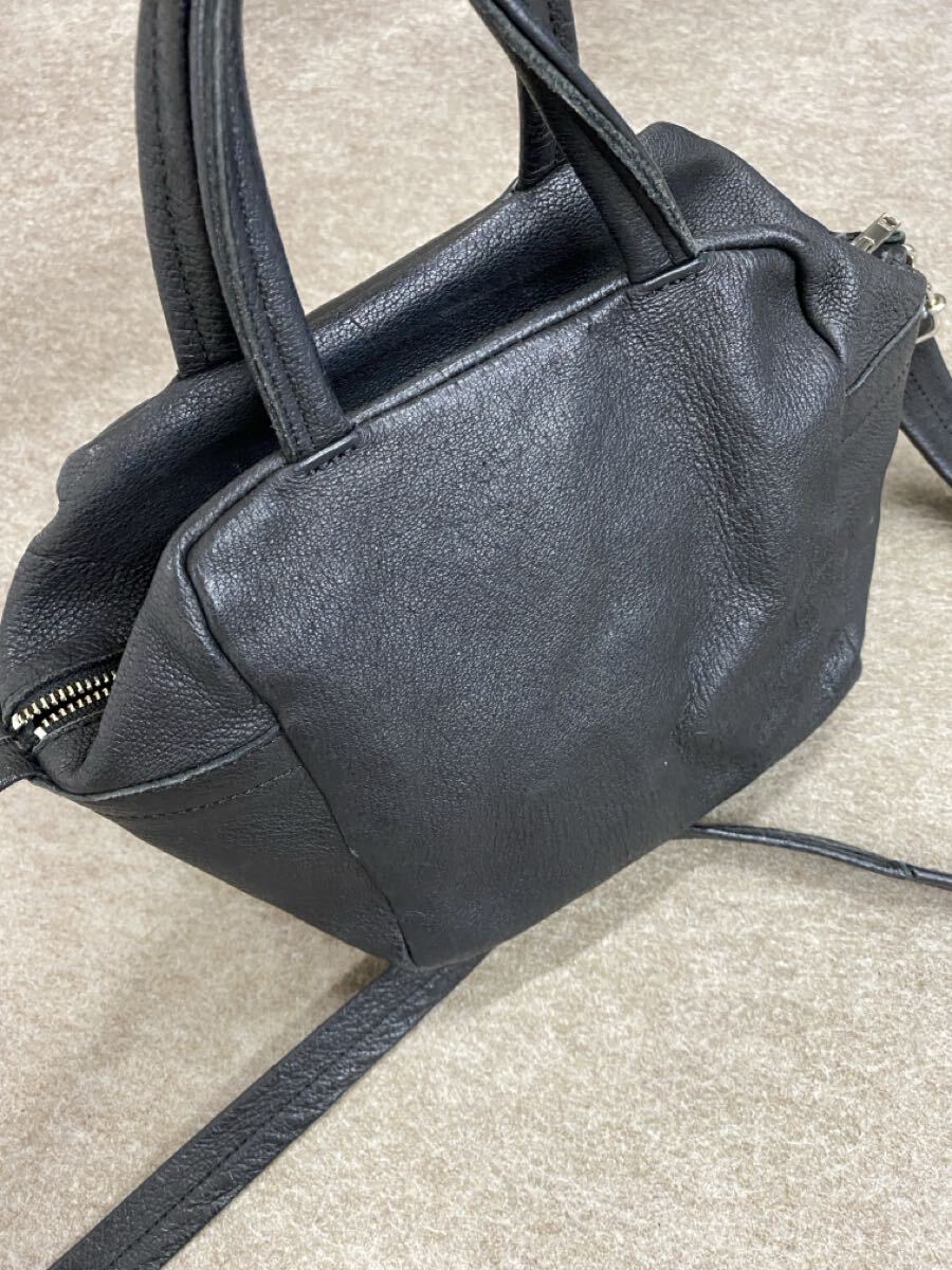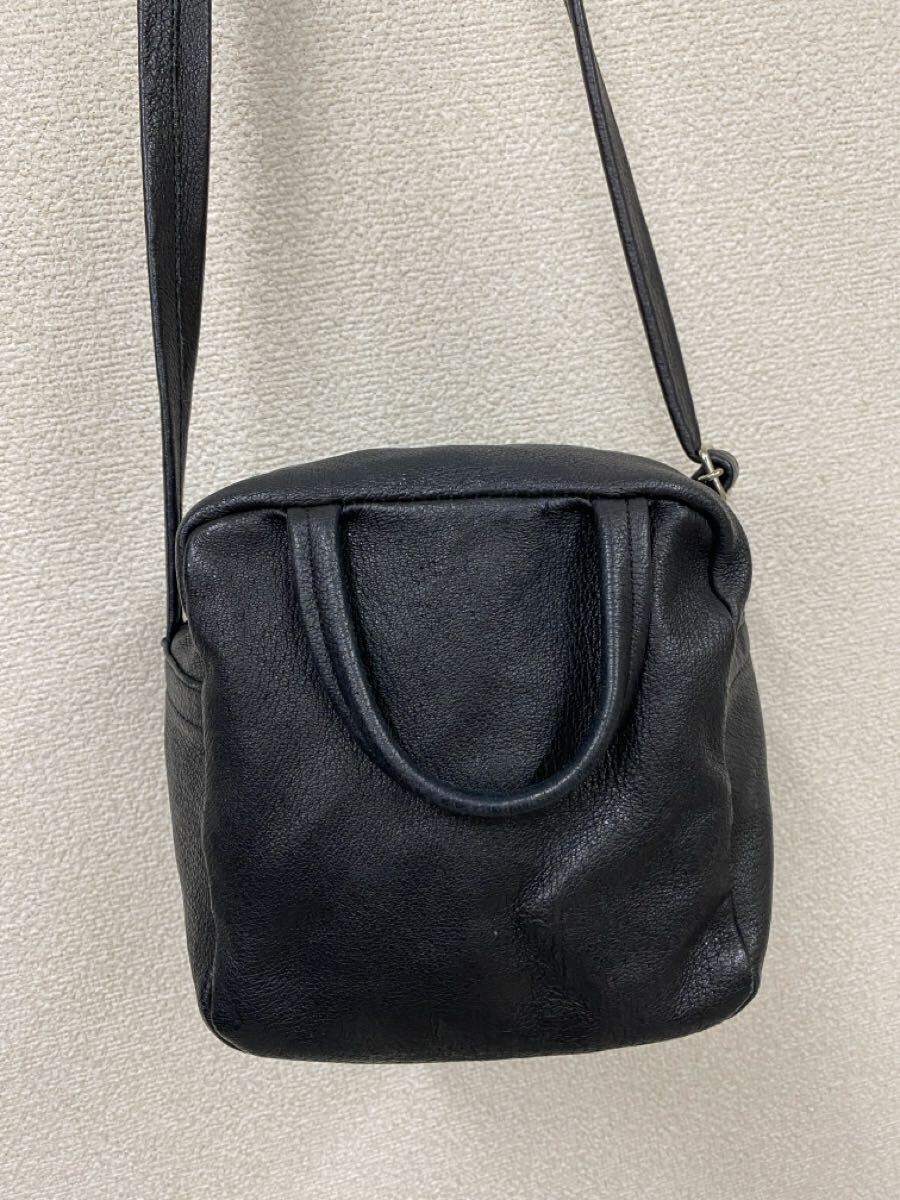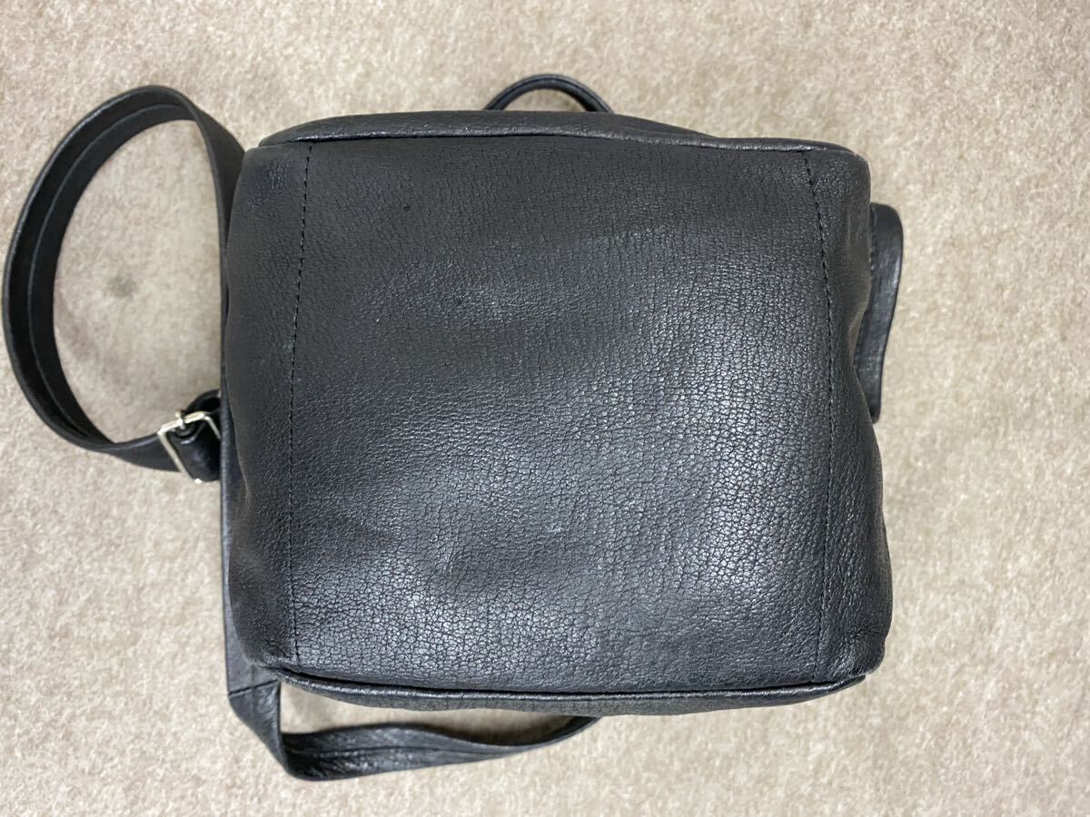 物を詰め込めばキューブ型のシルエットが引き立ちますが、しなやかな革なので、少なく入れたときも自然です。