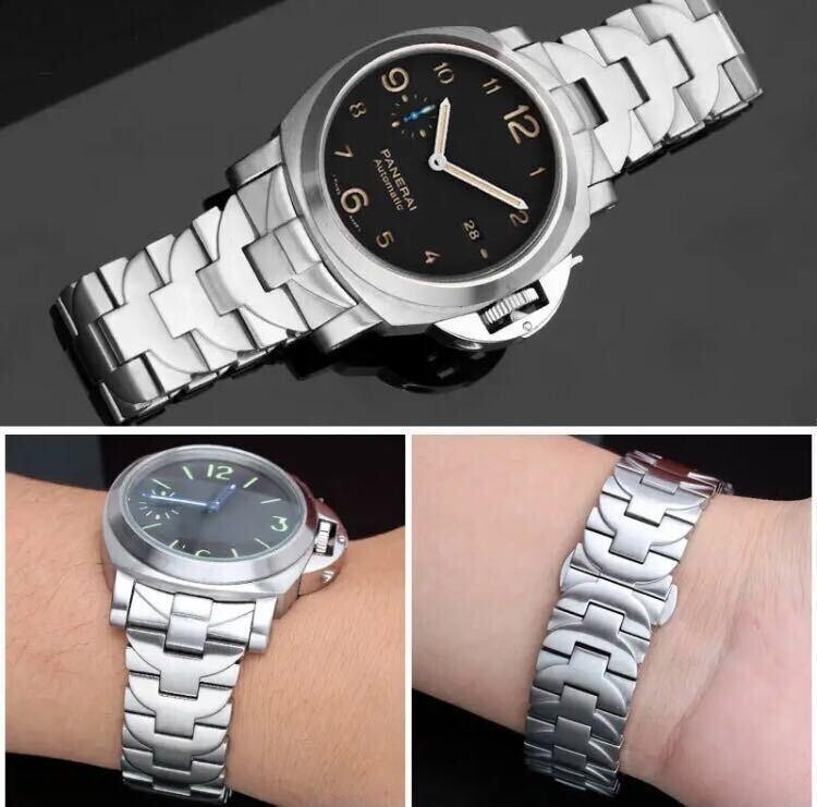 24mm パネライ ルミノール 腕時計 交換 修理用 ブレスレット 互換品 シルバー PANERAI