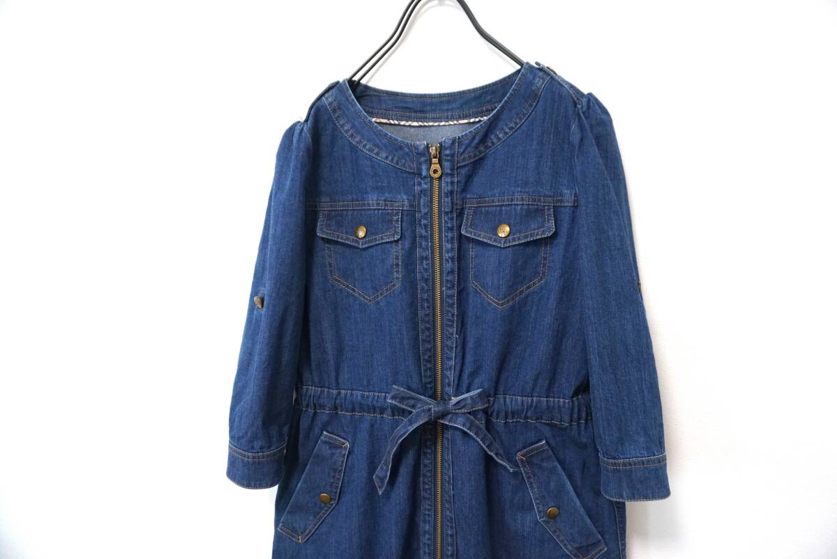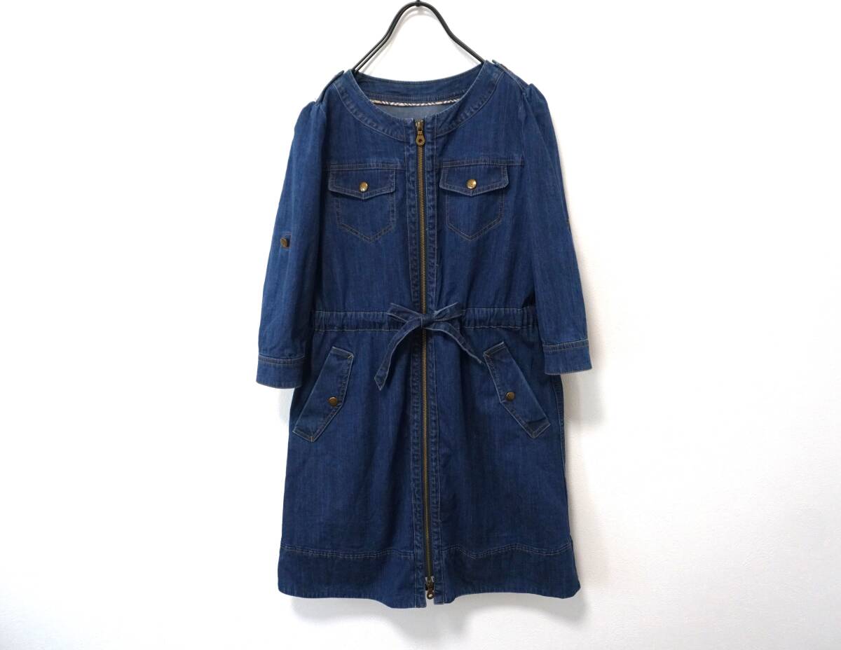 BURBERRY BLUE LABEL ノーカラーストレッチデニムワンピース 38