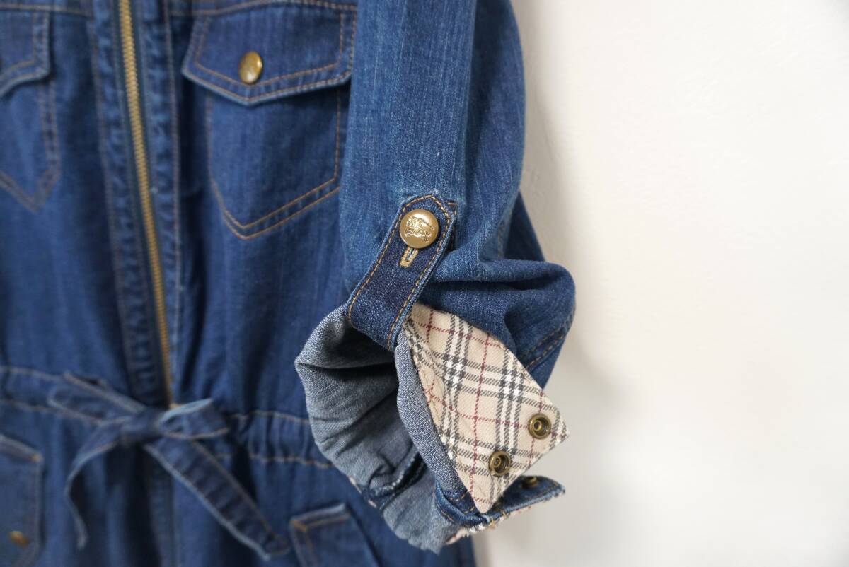 BURBERRY BLUE LABEL ノーカラーストレッチデニムワンピースです。