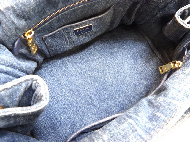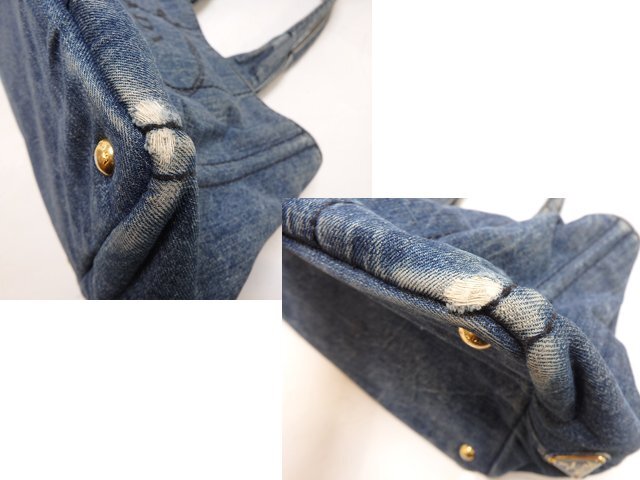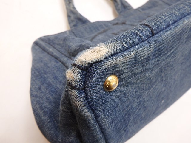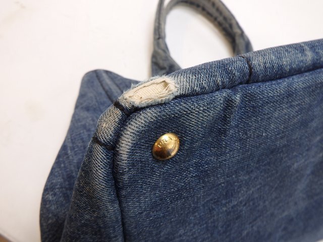 ブランド:PRADA (プラダ) ライン :カナパ 型 番 :B1877B サイズ :約 H31cm×W34cm×D22.5cm カラー :ブルー 素 材 :デニム 仕 様 :ハンド バッグ 間口オープン ポケット×5 付属品 :本体・ギャランティカード こちらのお品は【 中古 】となります。 底面4つ角に強い摩耗あり(要画像確認) 底鋲等の金具に擦れキズ、塗装剥げ見られます。 そのほか全体的なヤケ、若干の型崩れ等の使用感が生じております。 別途:その他、いろいろ出品しています |
