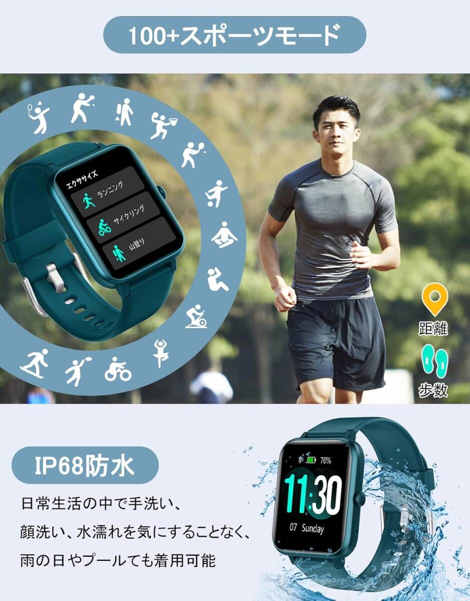 グリーン色 GanRiver スマートウォッチ 万歩計 通話機能付き 腕時計型 レディース メンズ iphone対応 アンドロイド対応