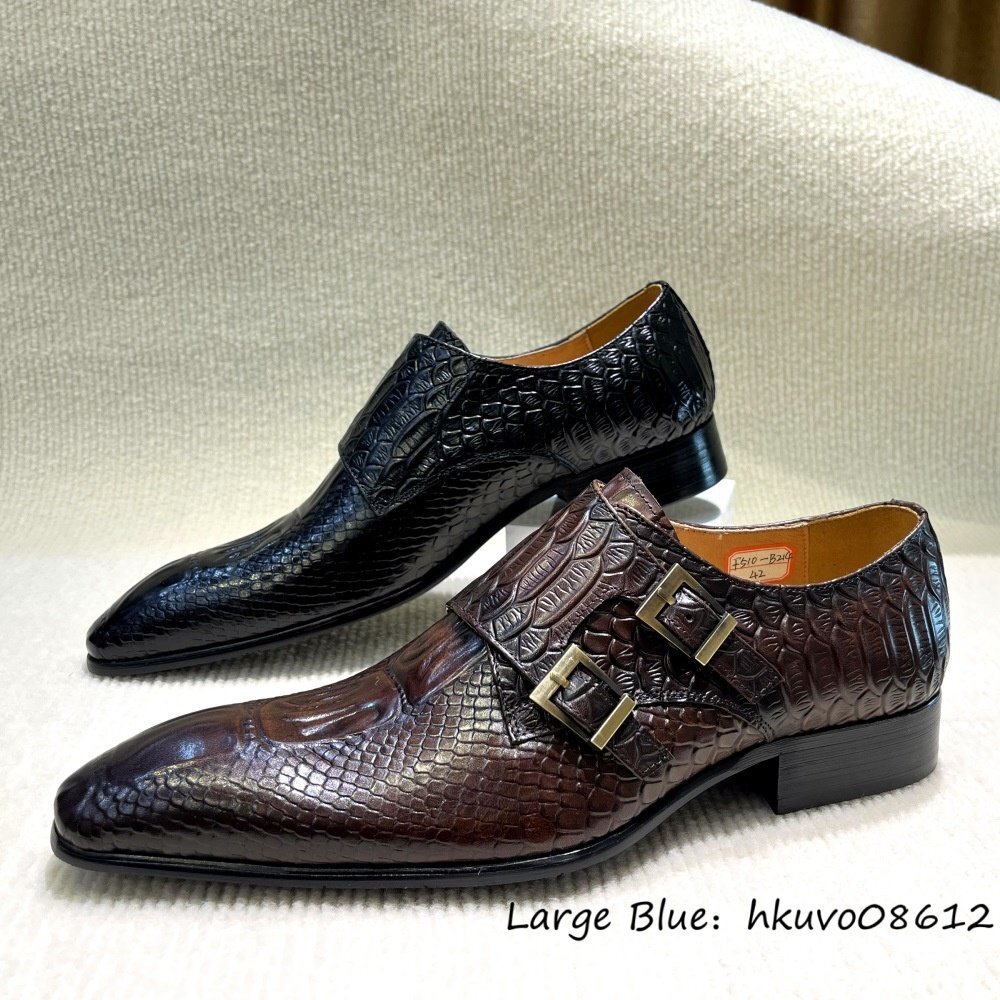 入手困難◆ダブルモンクストラップ 本革 鰐柄 ビジネスシューズ メンズ 職人手作り 革靴 高級牛革 レザーシューズ 紳士靴 ブラック 26.5cm