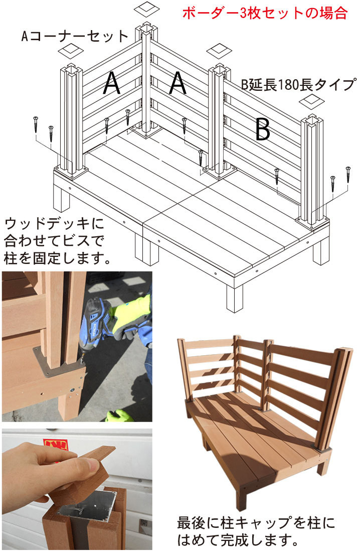 igarden アイウッドデッキ PLUS 6点セット(デッキ2・ボーダーフェンス3・90ステップ1) ダークブラウン 樹脂製 アルミ