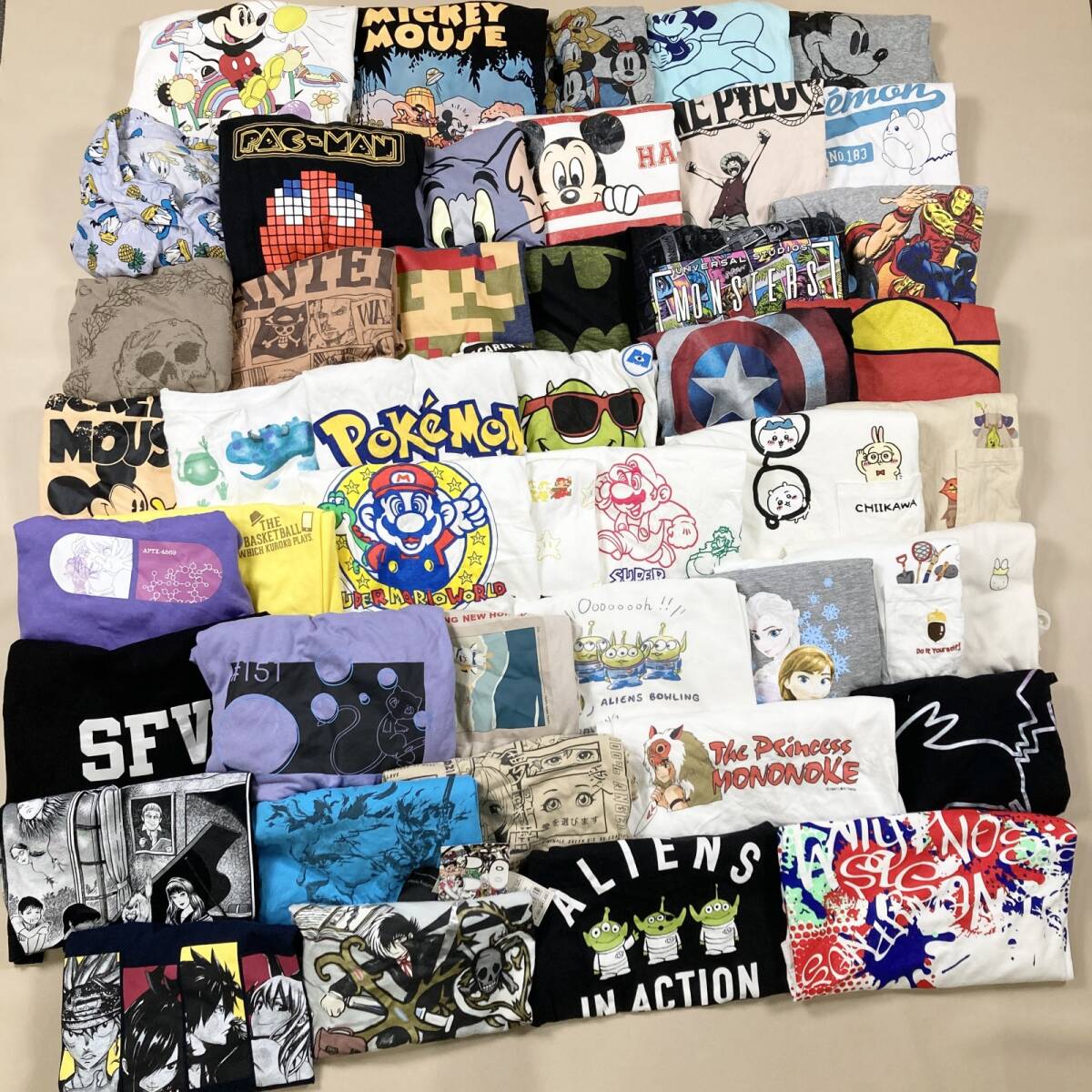 ★ アニメ 映画 キャラクター Tシャツ 46点 まとめ スーパーマリオ ジブリ ワンピース 等 メンズ レディース サイズMIX 卸 現状品 7.48kg