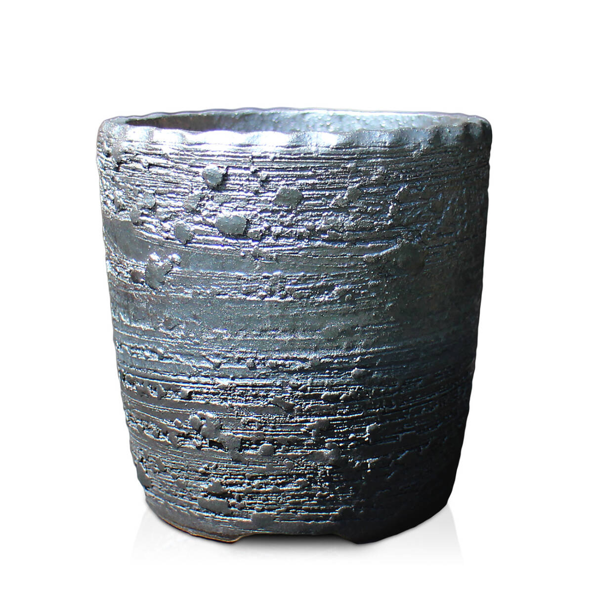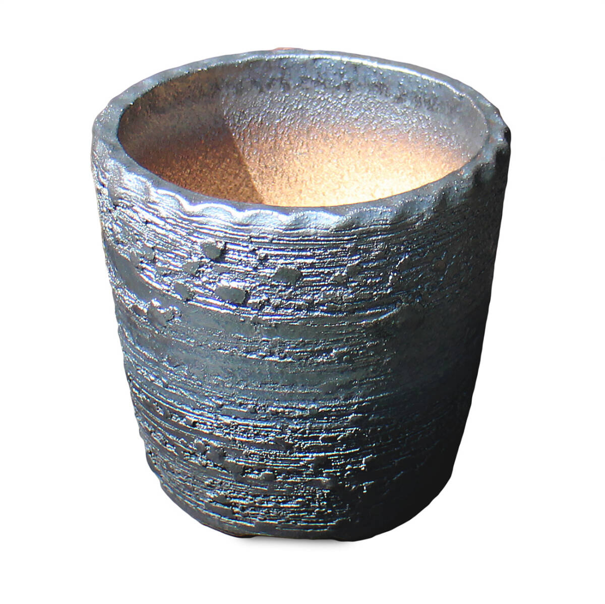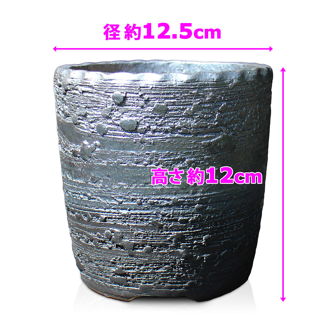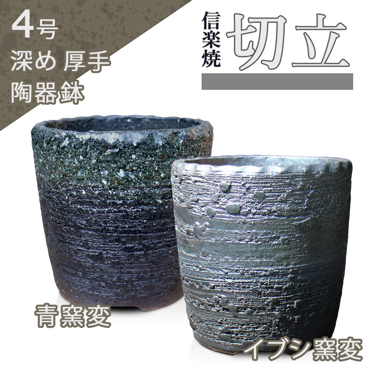 商品名 | 盆栽鉢 4号 切立 イブシ窯変 グレー 黒 信楽焼 燻し 山野草 観葉植物 アガベ 塊根 コーデックス サボテン 陶器 小品 小さい 深め 約12.5センチ 苔 |
