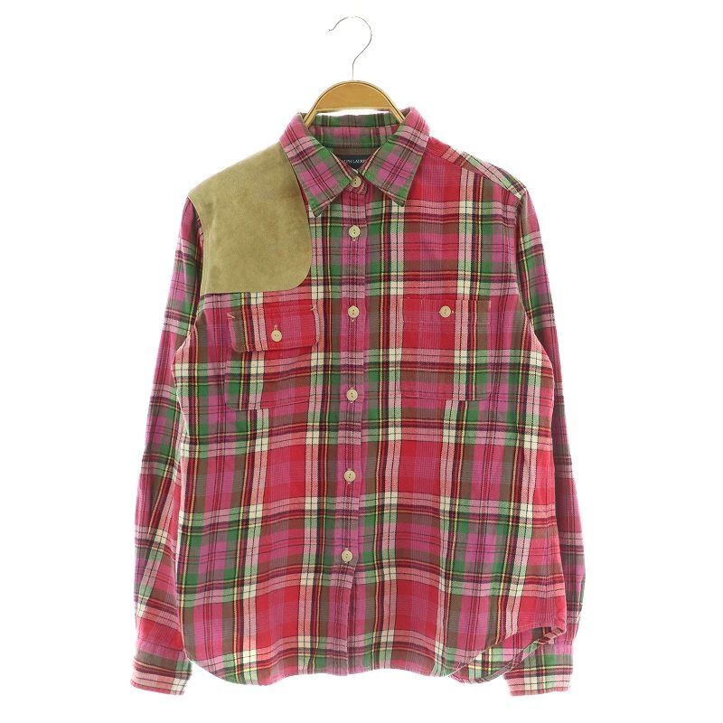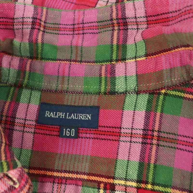ラルフローレン RALPH LAUREN チェック柄スエードパッチチェックネルシャツ 長袖 160 ピンク /MY ■OS キッズ
