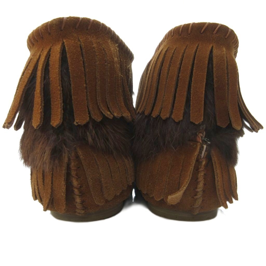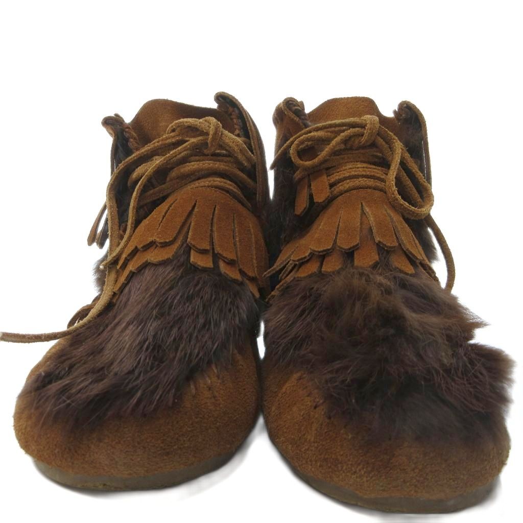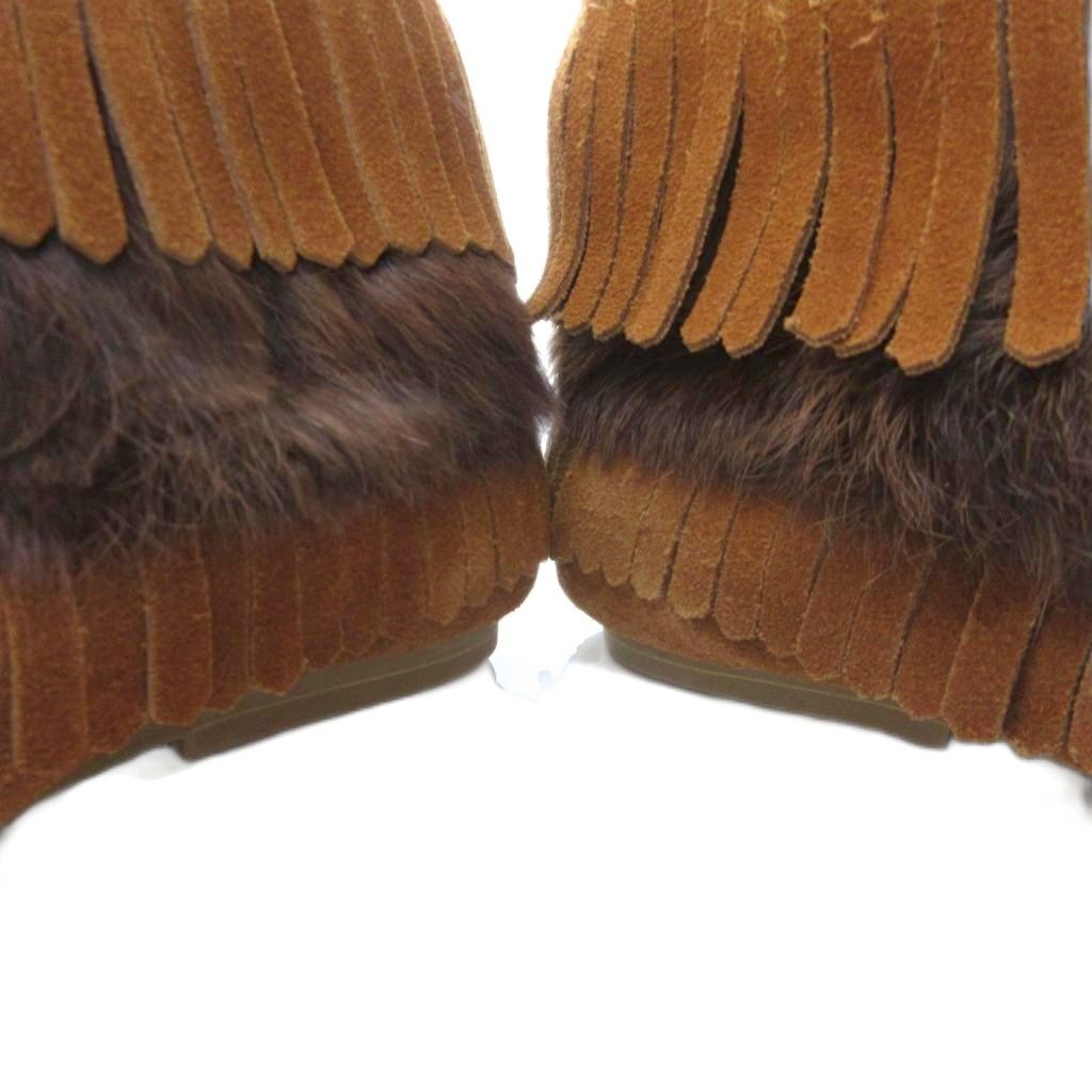 未使用品 JEFFREY CAMPBELL ジェフリーキャンベル フリンジシューズ ラビットファー 茶 ブラウン 36 約23cm IBO77
