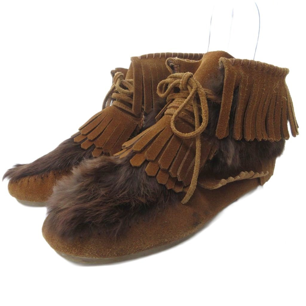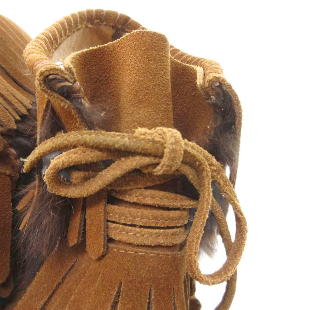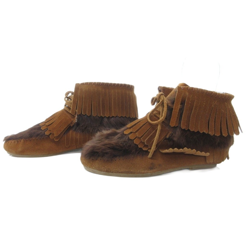 未使用品 JEFFREY CAMPBELL ジェフリーキャンベル フリンジシューズ ラビットファー 茶 ブラウン 36 約23cm IBO77