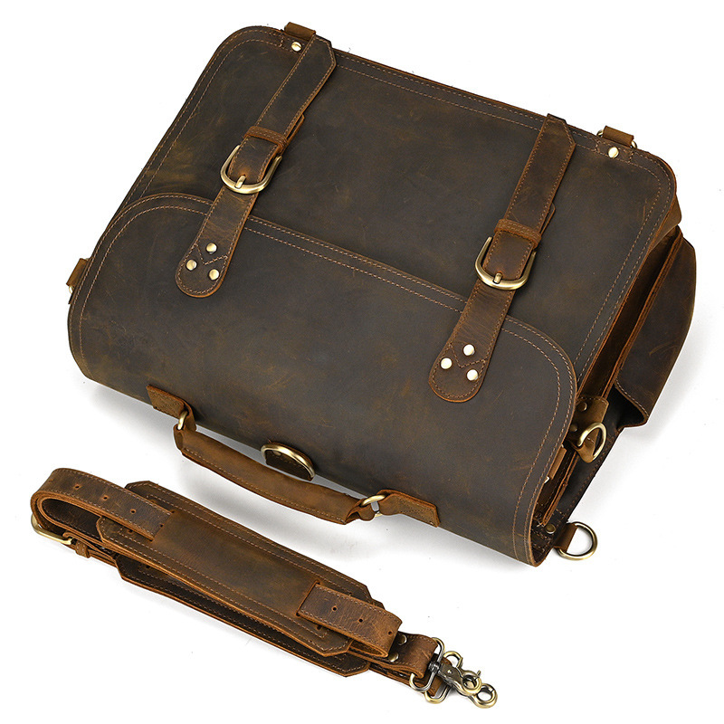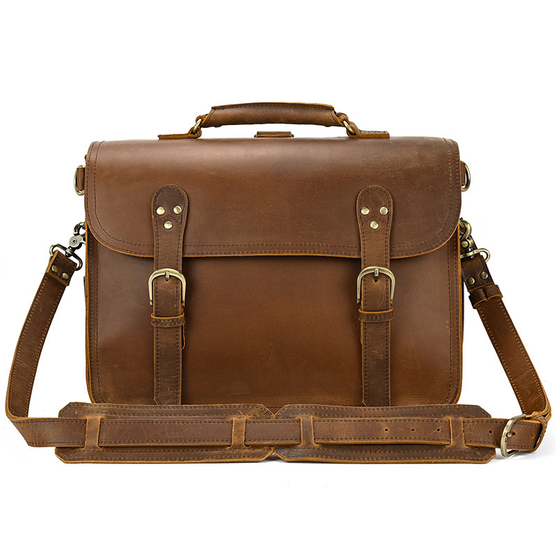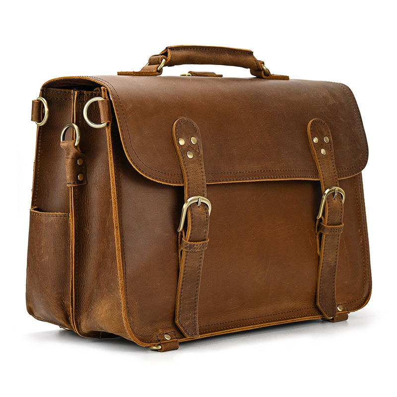 上質な本革を使用したクラシックなデザインのビジネスバッグです。耐久性と機能性を兼ね備え、通勤や通学、外出時に最適なショルダーバッグ?ブリーフケースとして活躍します。スタイリッシュなブラウンカラーで、男女問わず様々なシーンでお使いいただけます。