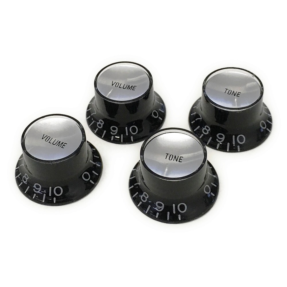 YJB PARTS リフレクターノブ ブラック/シルバープレート(エンボス文字) ミリ 4pcs (メール便のみ送料無料)