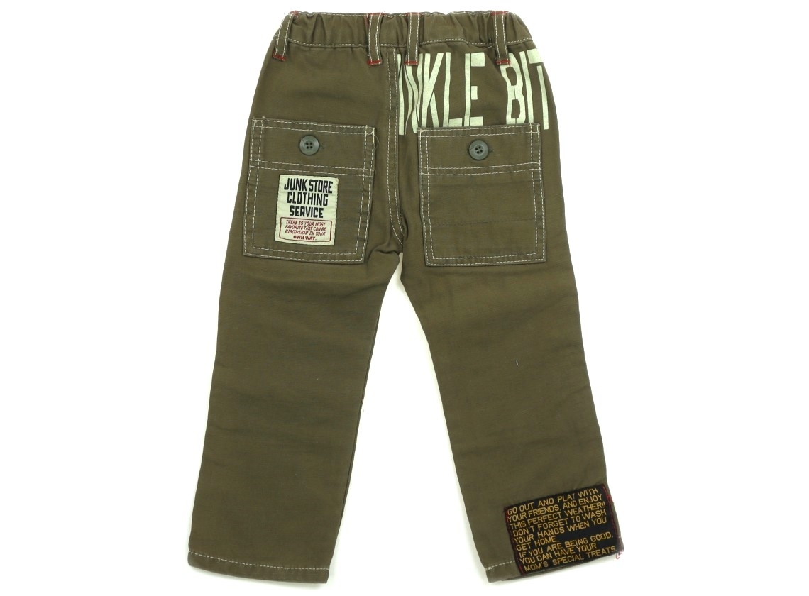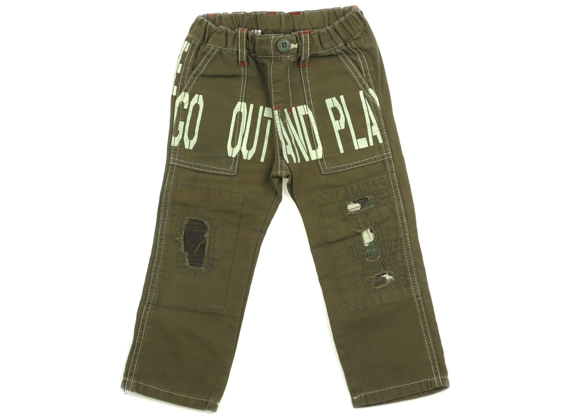 綿100%。ウエストは総ゴムです。ダメージ加工。ウエストゴムがやや伸びています。