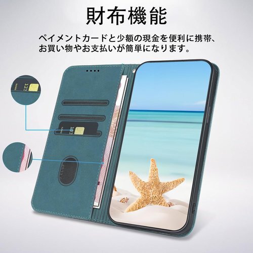 AQUOS R9 ケース 手帳型 SH-51E ケース カバー 全面保護 耐衝撃 6.5インチ対応 - グリーン 1291
