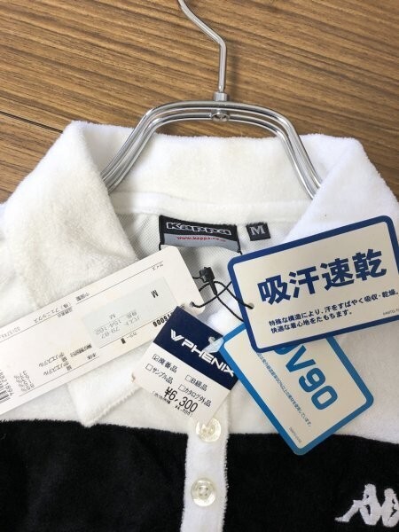 未使用新品タグ付き 訳アリ Kappa カッパ レディース 吸汗速乾 UV90 パイル地 半袖ポロシャツ M 白 × 黒 フロント切替 ロゴ刺繍