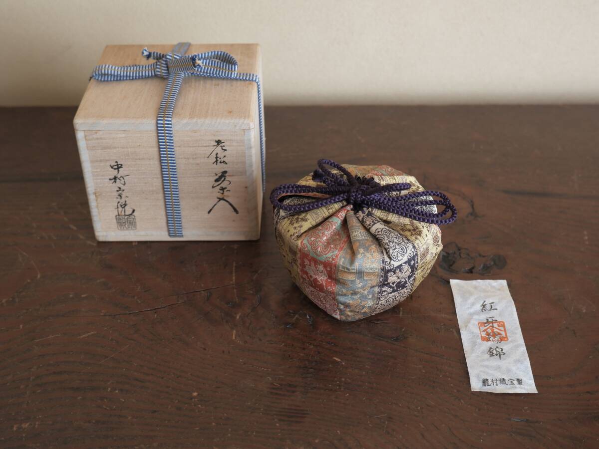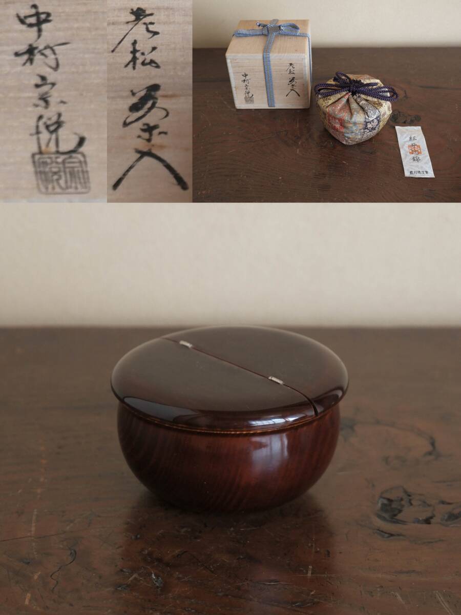 【青枠】中村宗悦 老松 茶入 棗 茶入れ 割蓋 茶道具 箱付 仕覆付 古道具 時代物 美術品Q1880