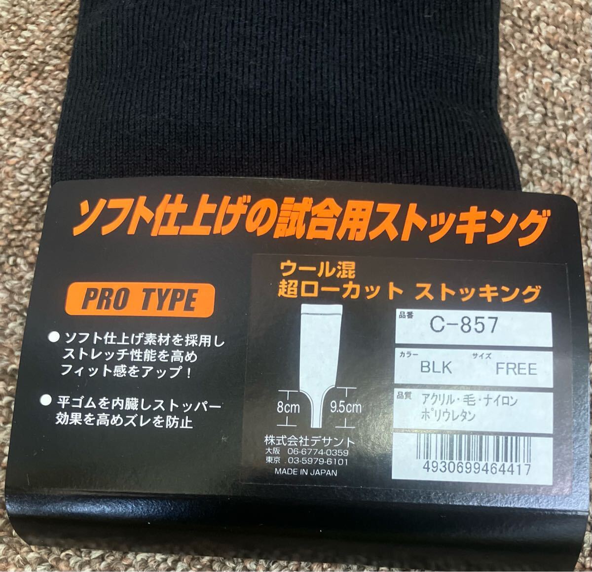 定価1980円 デサント 野球 超ローカット ストッキング C-857 デサント ウール混 ブラック DESCENTE BLK ユニフォーム ソックス ウェア