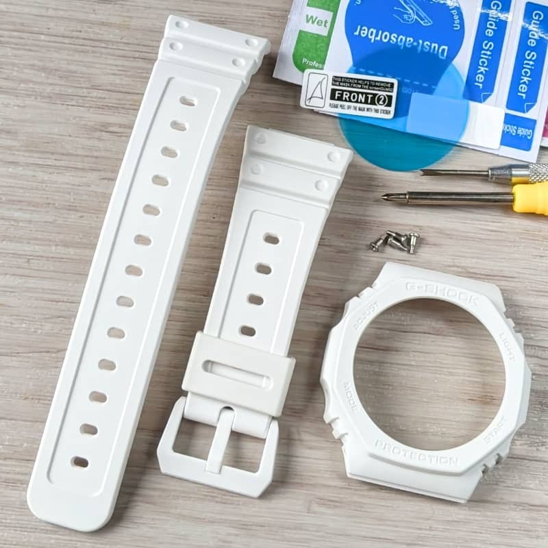 G-SHOCK GA-2100 純正ベゼル・ベルト ホワイト [液晶フィルム + 工具] 付 - 送料無料