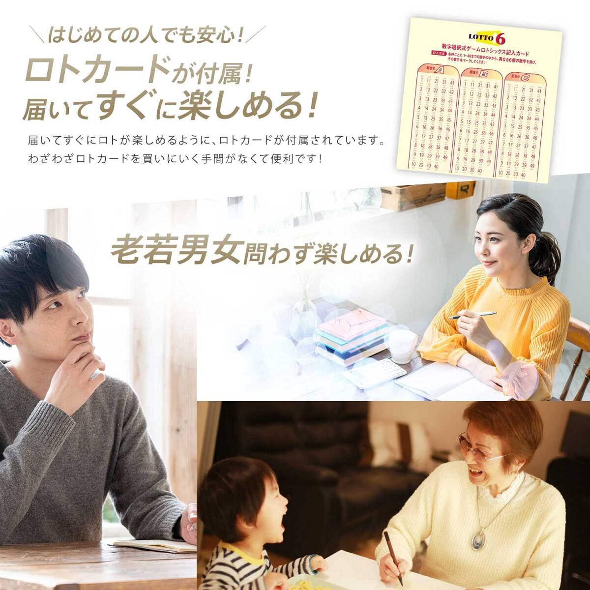ロトカードが付属しているので、余計に買いに行く手間も省け、届いてすぐにLOTOが楽しめます。老若男女問わず、ご好評をいただいております。