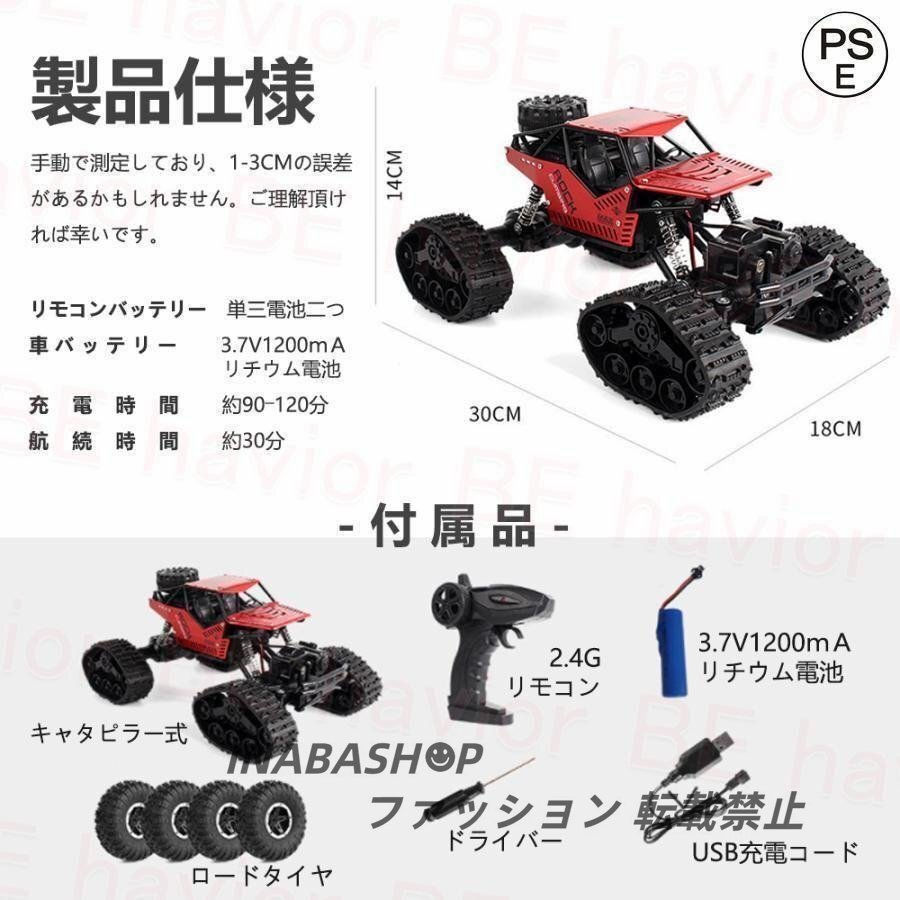 ラジコンカー オフロード キャタピラー式RCカー リモコンカー 2.4GHz充電バッテリー 四輪駆動タイヤ交換可能 子供向け おもちゃ プレゼント