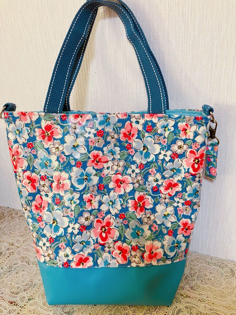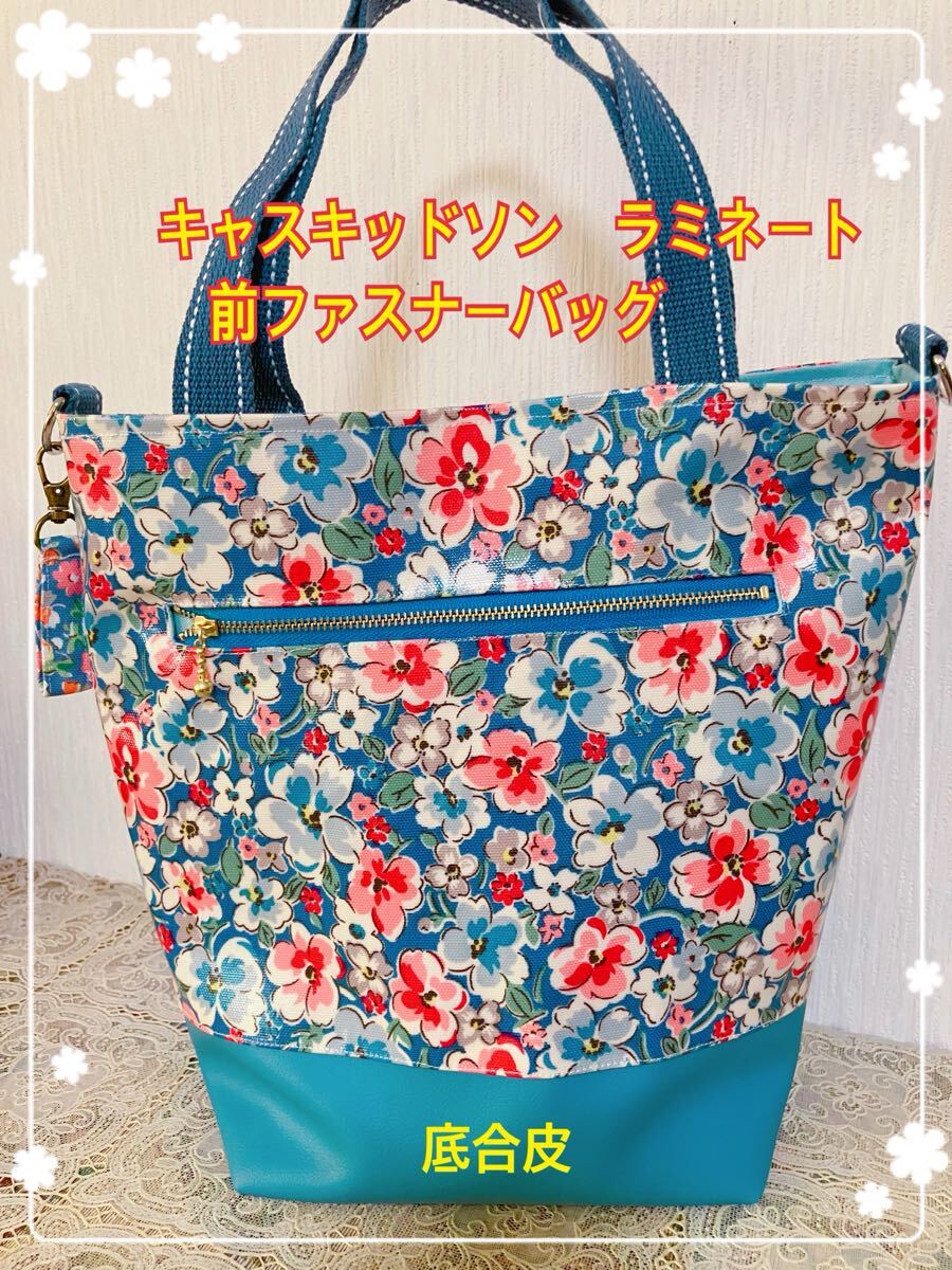 キャスキッドソン ラミネート生地を使って制作したハンドメイドのショルダー兼トートバッグです。 全面お花柄で上品な生地です。