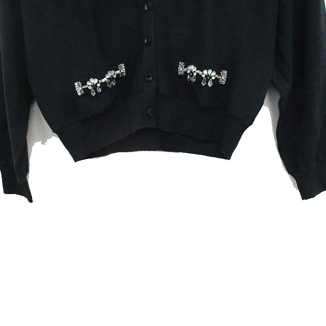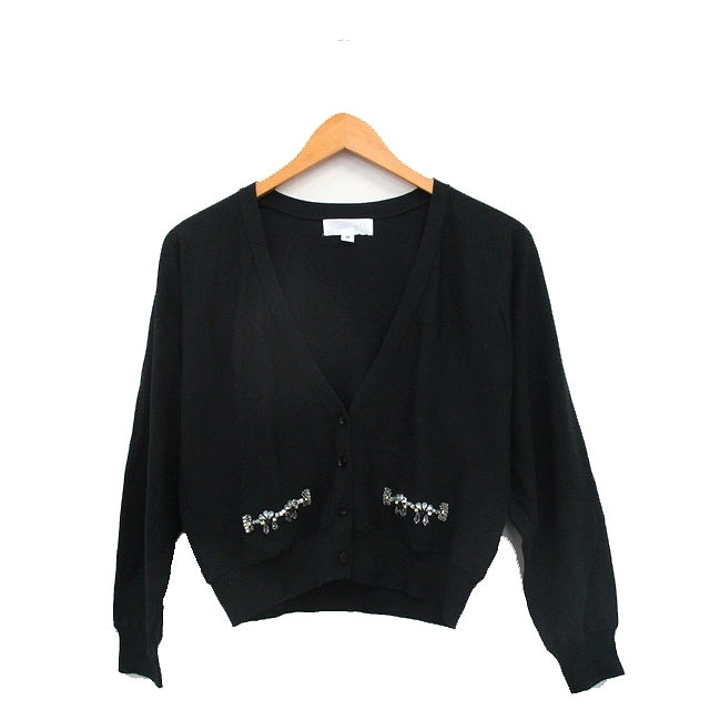 ジルスチュアート JILL STUART カーディガン 長袖 Vネック コットン ビジュー M ブラック 黒 /KT14 レディース