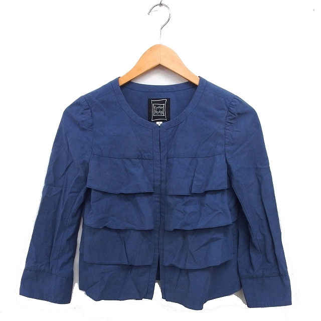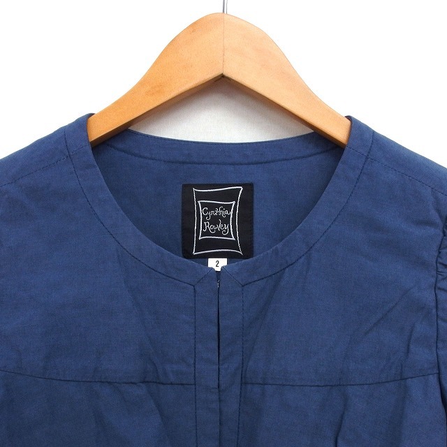 シンシアローリー CYNTHIA ROWLEY ティアード カーディガン クロップド スリット コットン混 長袖 2 青 ブルー /NT11 レディース