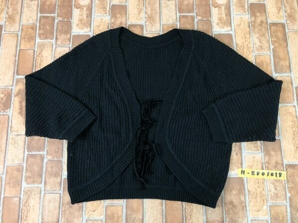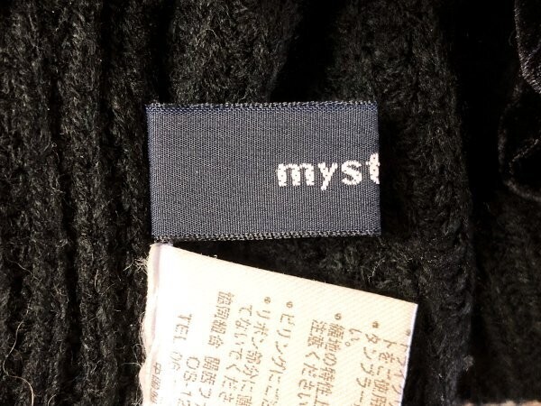mystic ミスティック レディース ベロア リボン付き ニットカーディガン 黒 アクリル
