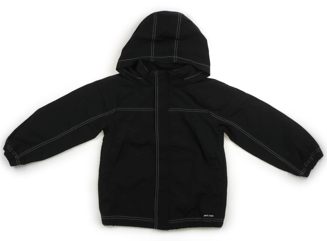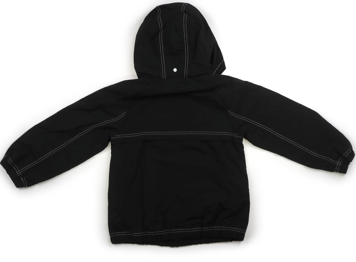 ナイロン地。裏地付き。フードは襟の中にしまえます。前ファスナー開き。目立った汚れのない良品です。