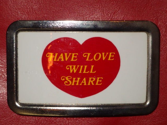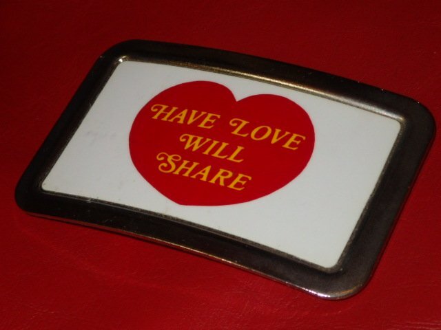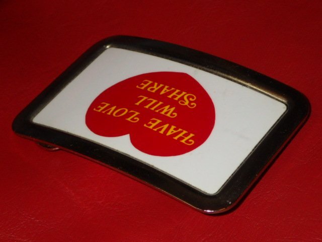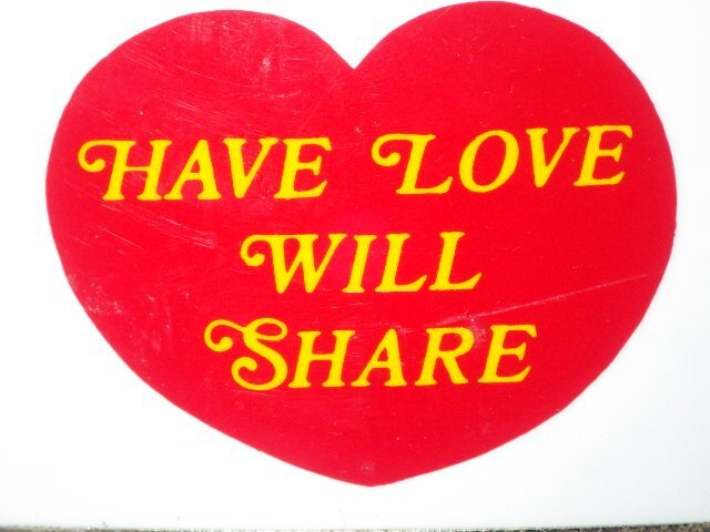 ハートマークにHAVE LOVE WILL SHARE/愛を分け与えようの文字がPEACEな一品♪