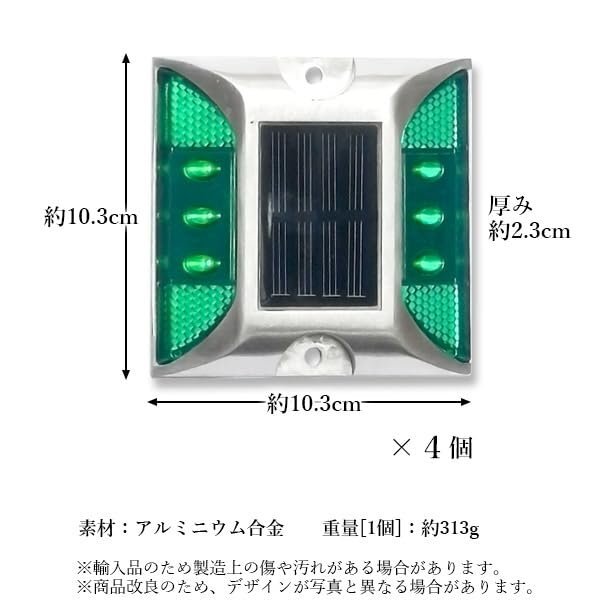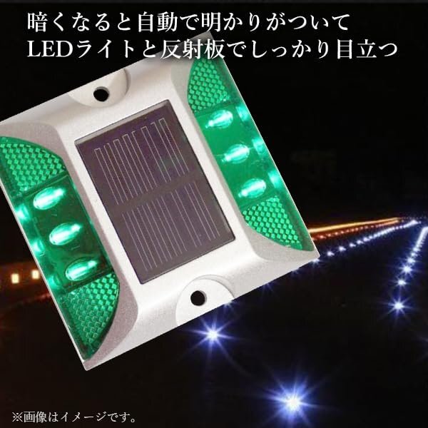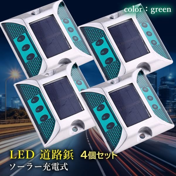 送料無料! 点滅式 防水 道路 充電 ソーラーライト 照明 ライト 埋め込み グリーン ガーデン 道路鋲 4個セット LED