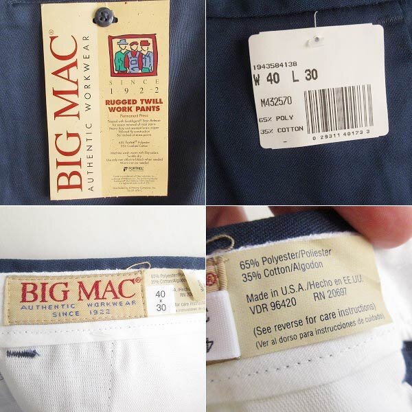 新品 90's USA製 BIG MAC ワークパンツ W40 L30 紺系 JCペニー ビッグマック NAVY アメリカ製 ビンテージ デッドストック D145-25-0019Z