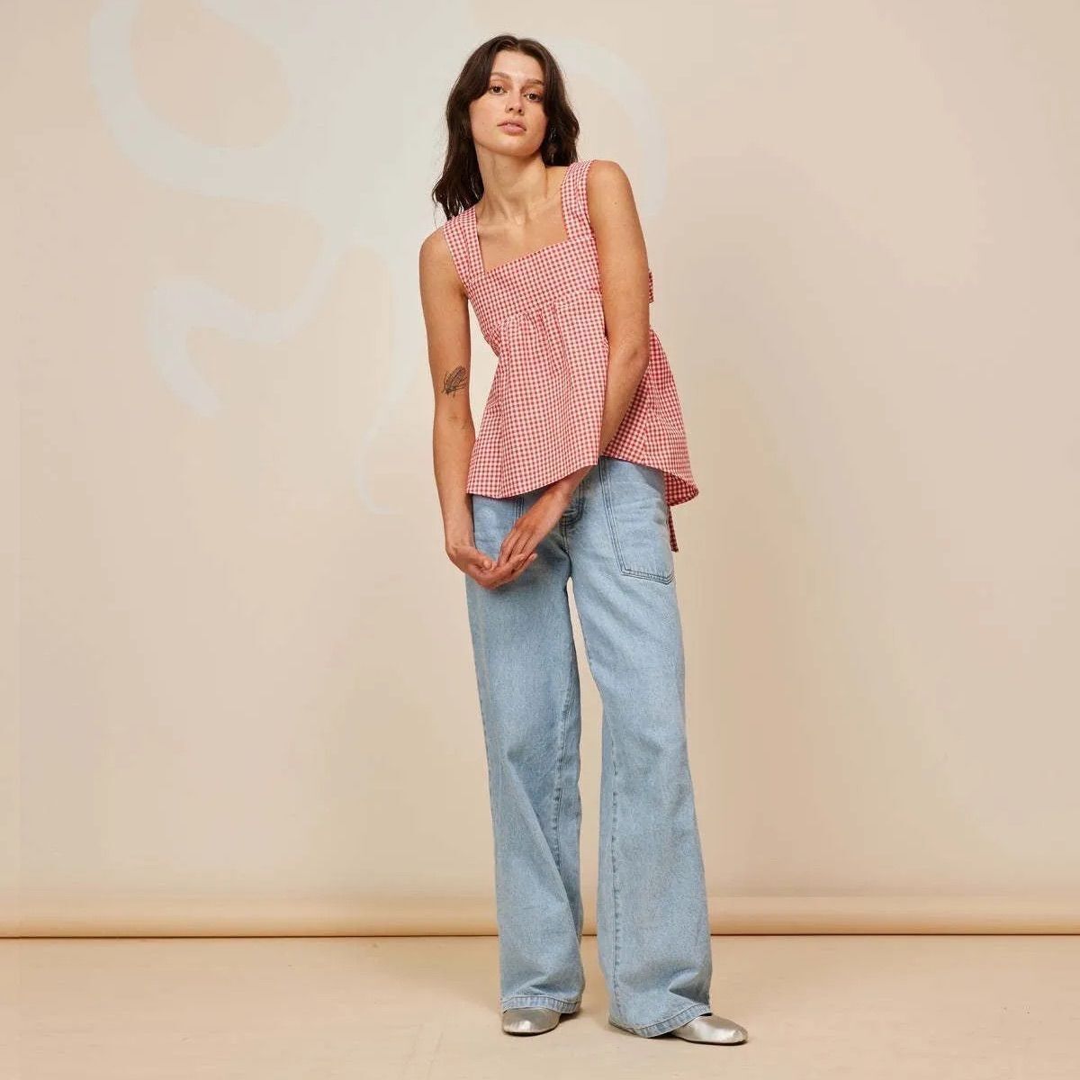 爽やかな赤と白、そして落ち着いた青と白の2色のギンガムチェックから選べます。どちらも合わせやすく、デニムパンツやワイドパンツと合わせると、カジュアルながらも上品なコーディネートが完成します。また、スカートと合わせれば、よりフェミニンで可愛らしいスタイルを楽しめます。