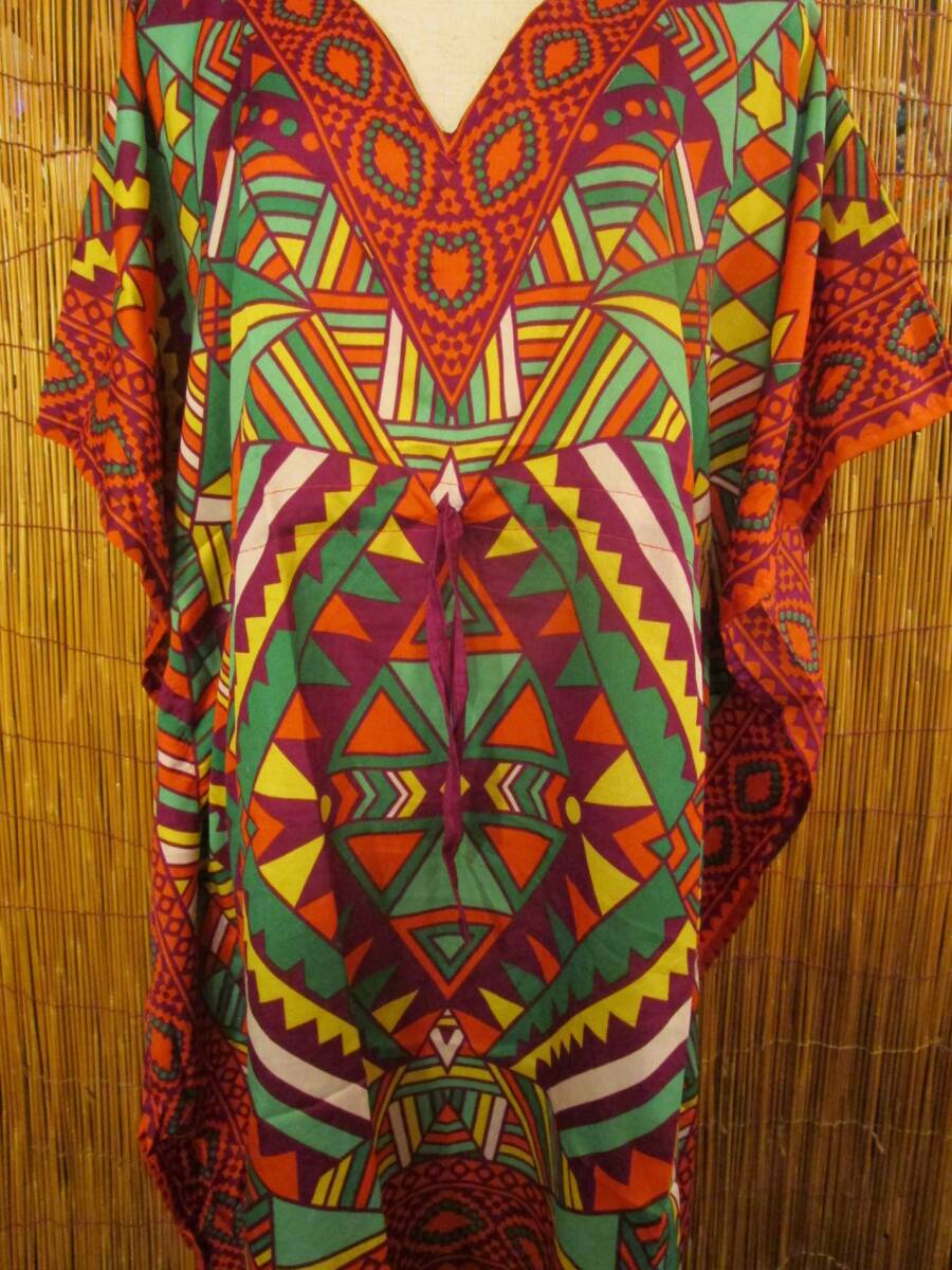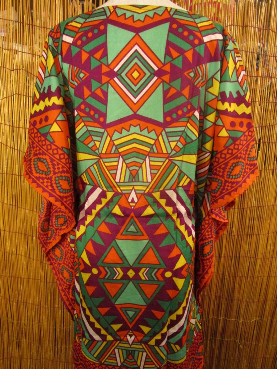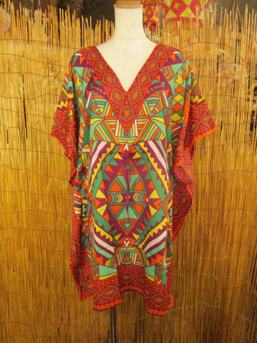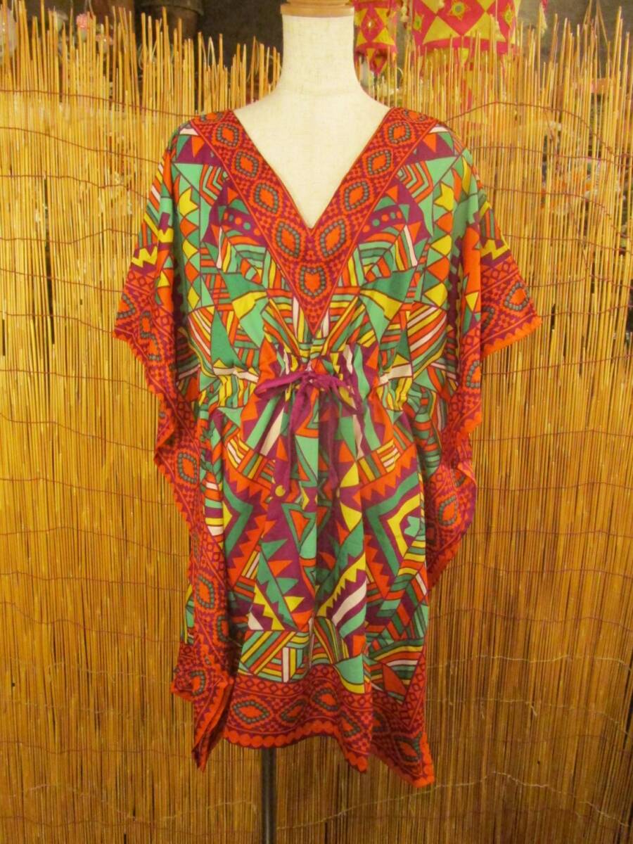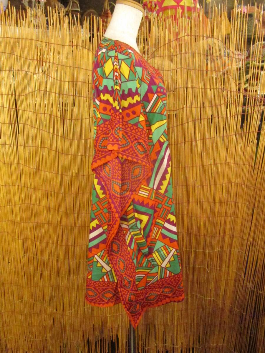 ⑤新品*薄手ビスコース素材*ゆったりサイズ *レトロ調プリント*ガラベーヤ*ポンチョ風*ミドル丈*ワンピース*ベリーダンス
