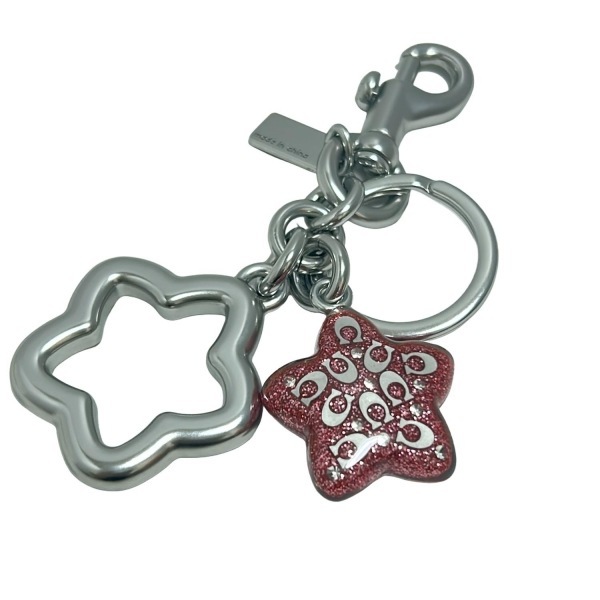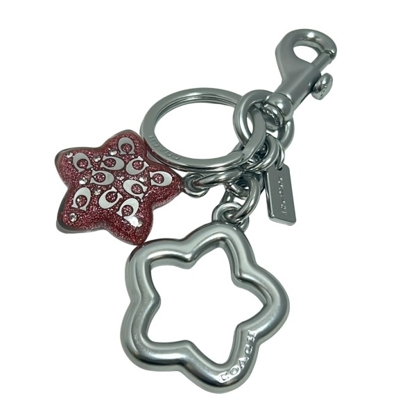 コーチ COACH キーホルダー(チャーム) - シルバー×ピンク スター(星)/ラインストーン/グリッター 美品 キーホルダー