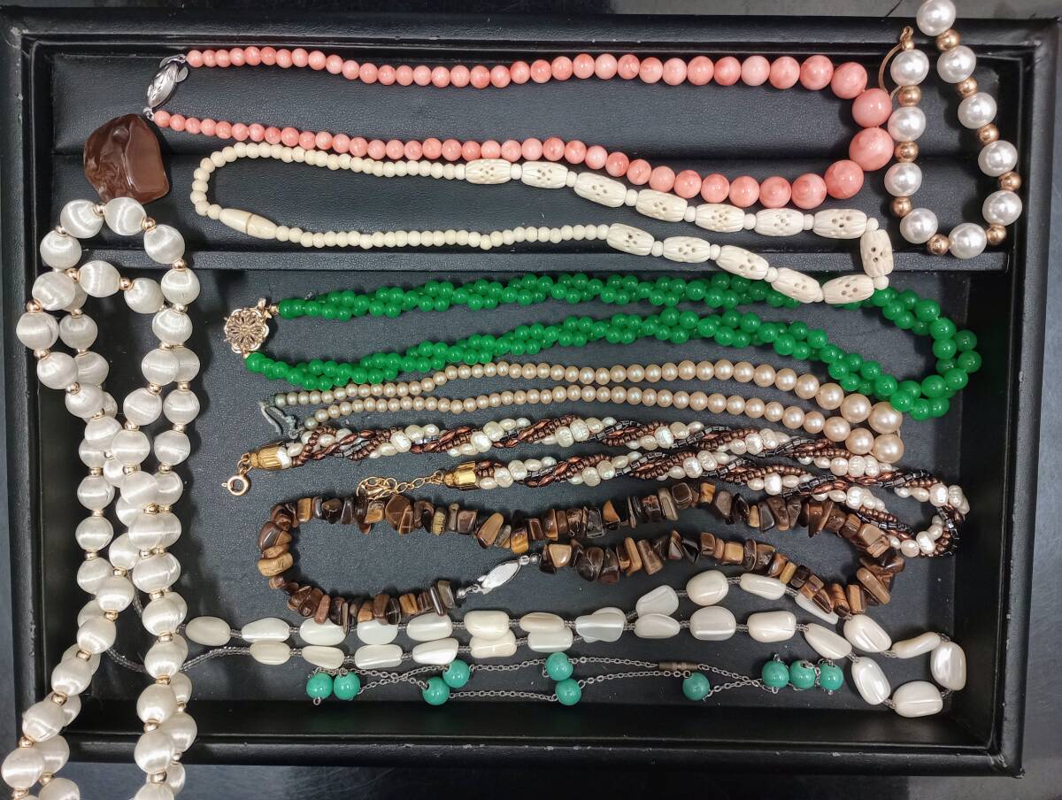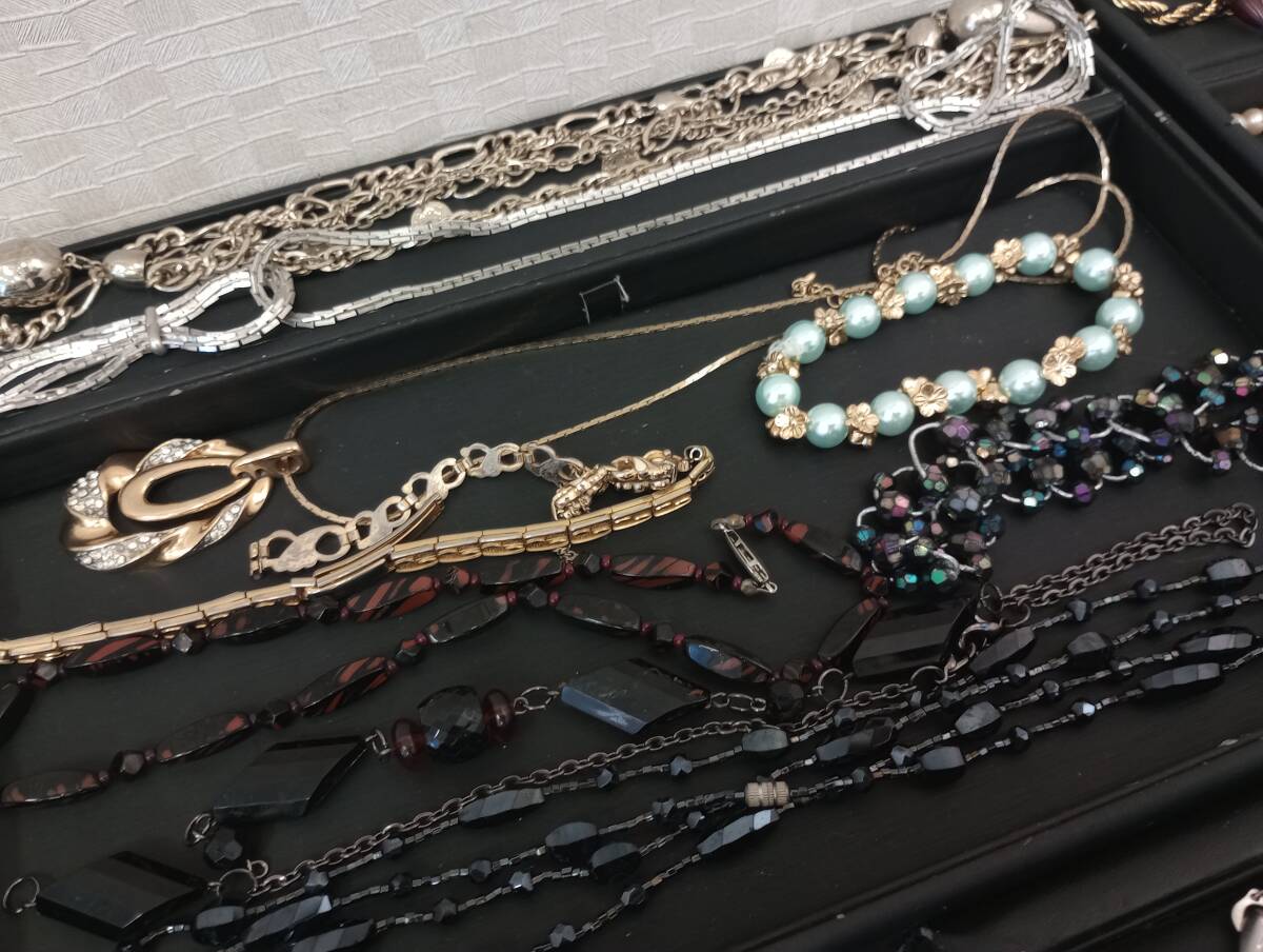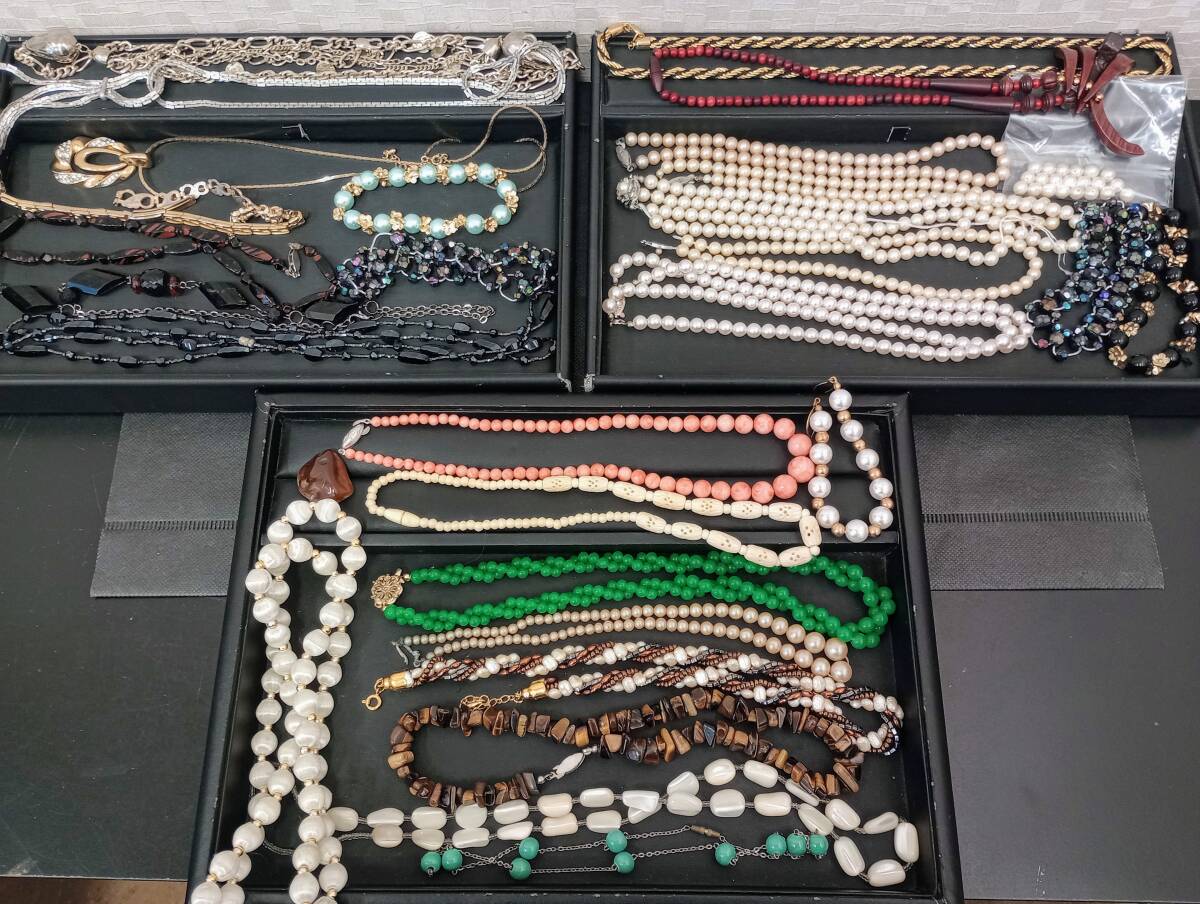①メッキ アクセサリー おまとめ パール ネックレス ブレスレット パワーストーン アンティーク ジャンクあり 中古品 現状品