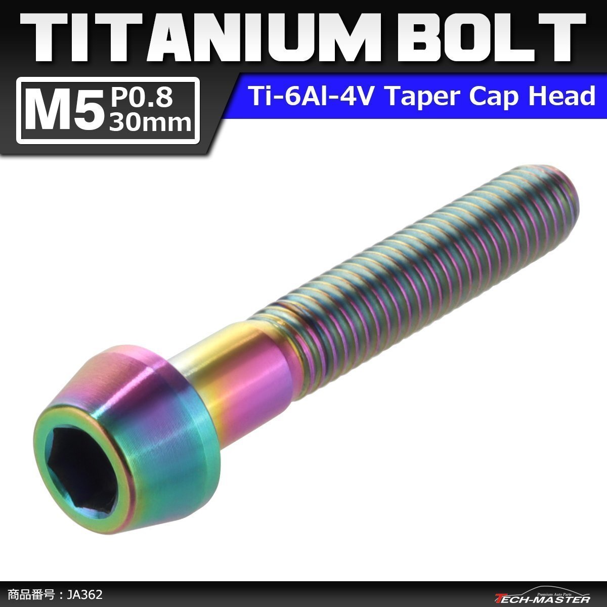 64チタン テーパーヘッド キャップボルト(六角穴付きボルト) 金属の中でも軽量、高剛性、対候性に優れた64チタン合金(Ti6AI-4V)を採用。 テーパー切削加工を施し、ドレスアップにも最適なボルトです。 |