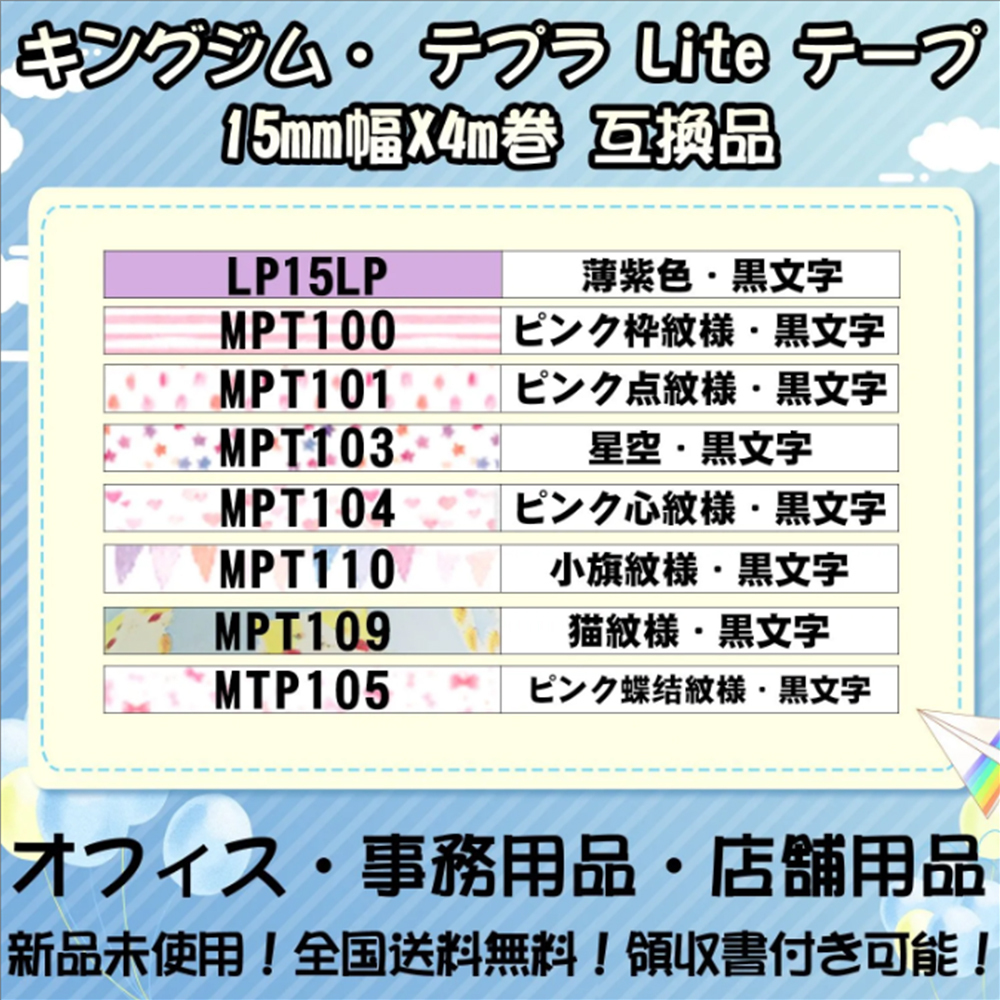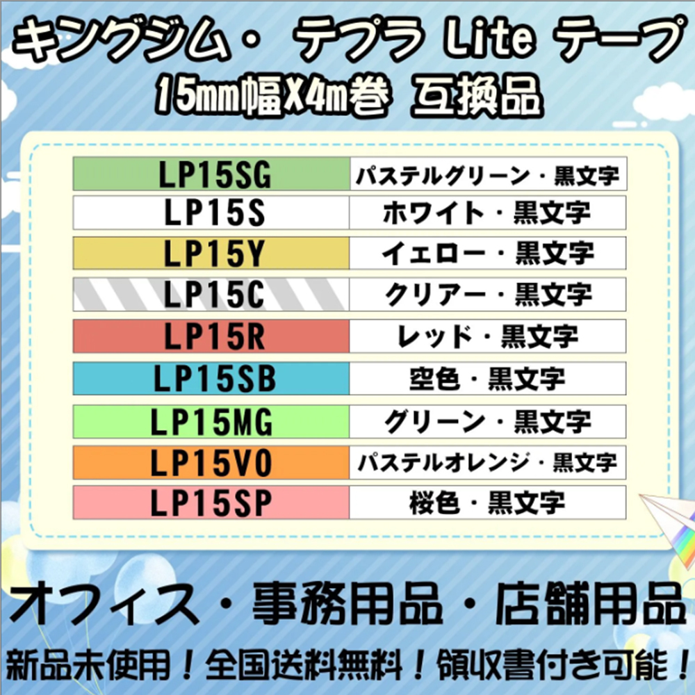 "◆キングジム テプラ Liteテープ 15mm幅X4m巻 互換テープカトーリッジ 17色・自由選択可能(3個専用ページ)