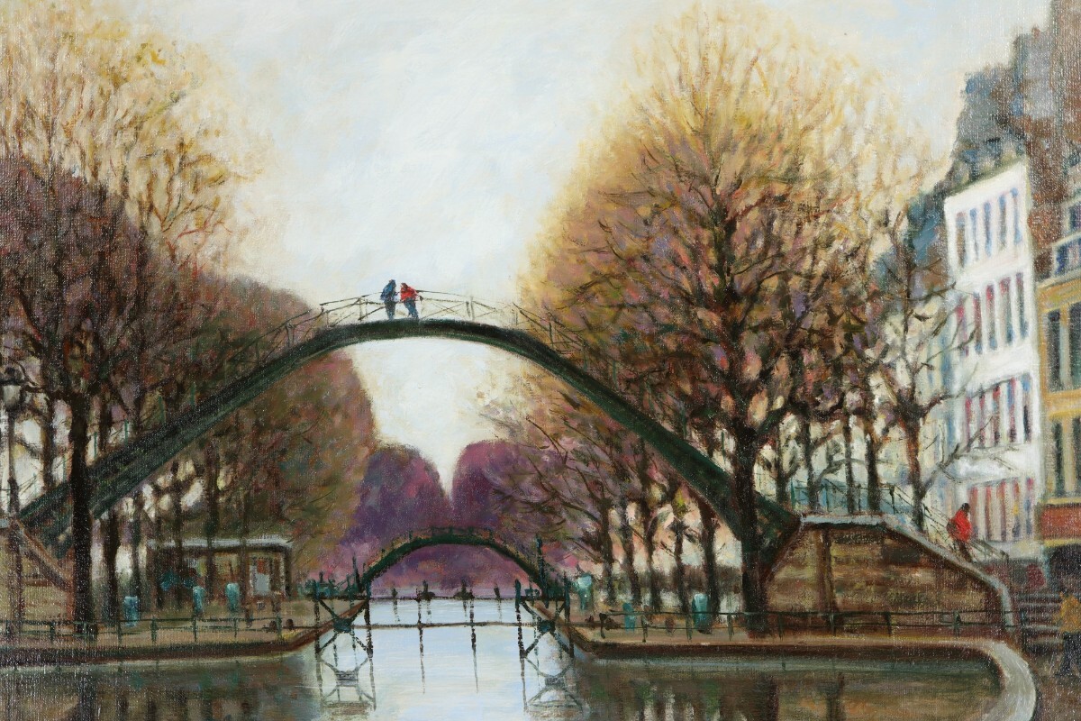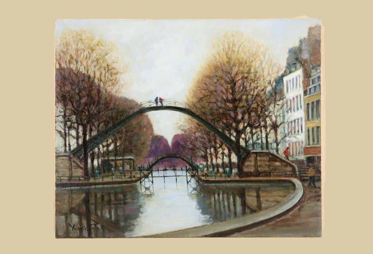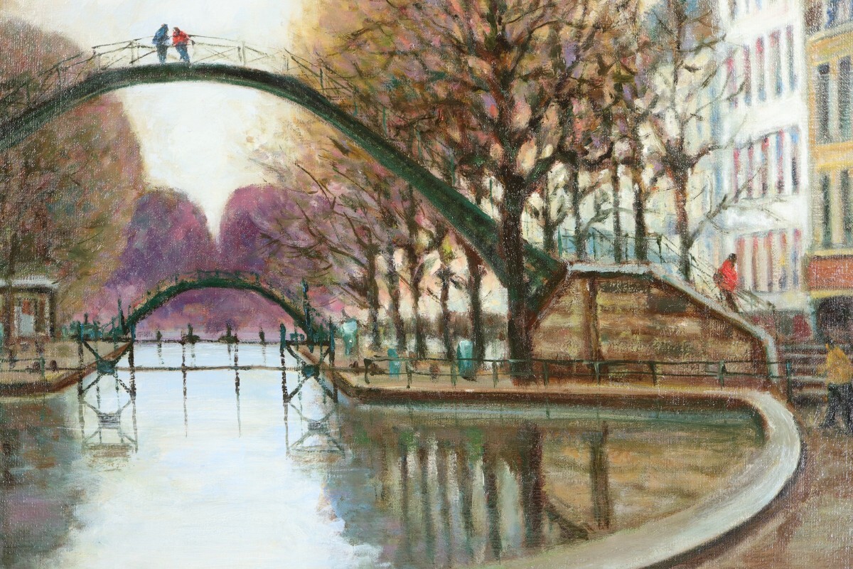 ★芝芳雄 油彩「サンマルタン運河 パリ」★