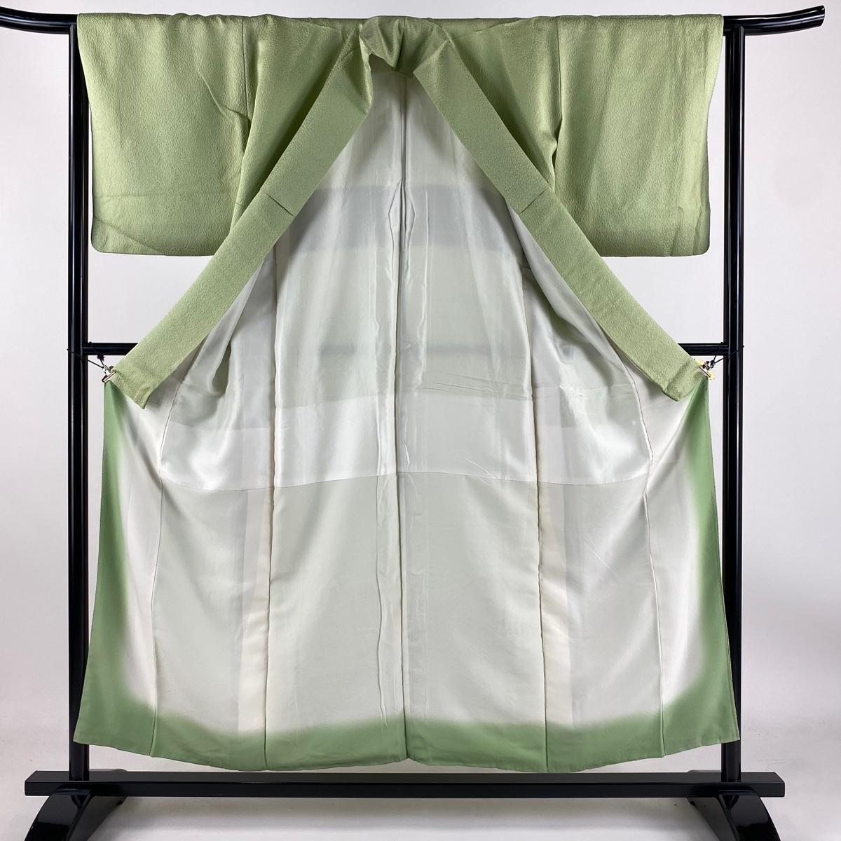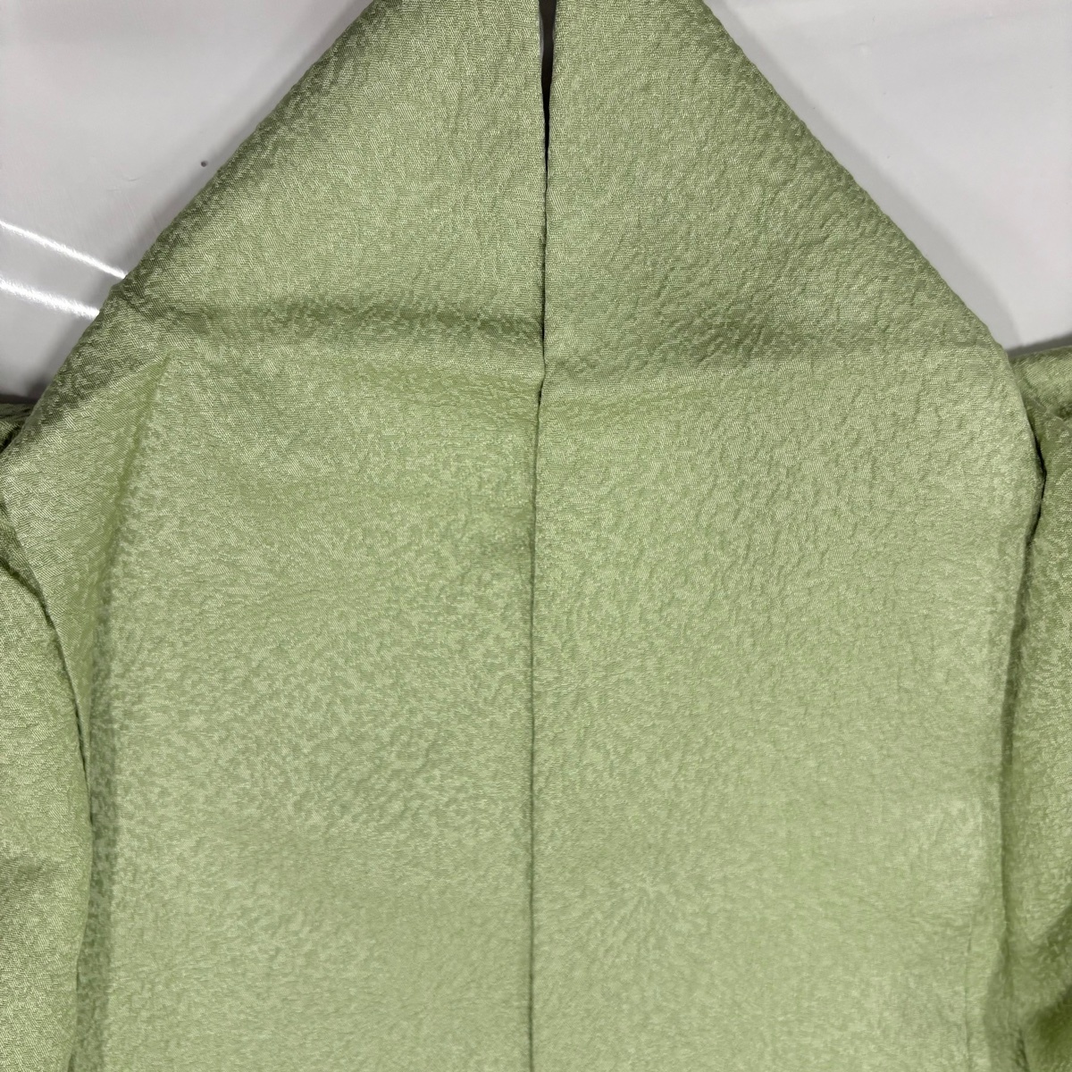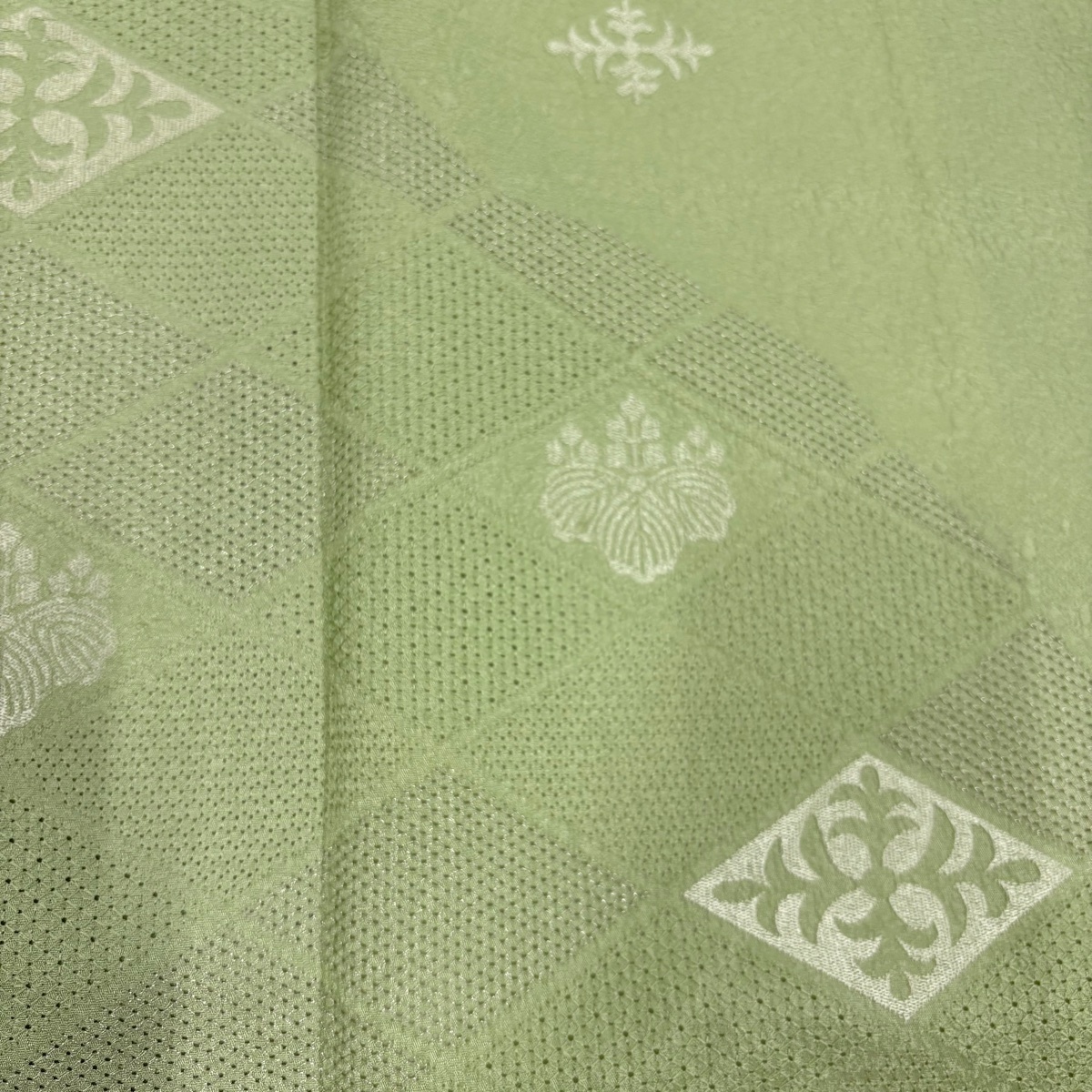 | 付下げ 秀品 桐 菱格子 刺繍 銀糸 黄緑色 袷 身丈154.5 裄丈63 S 正絹 【中古】 |