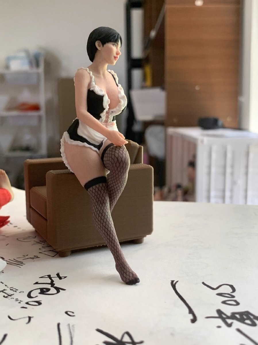 【完成品】1/18 メイド服の少女 フィギュア レジンキャスト車モデル付き 塗装済みミニチュアジオラマ