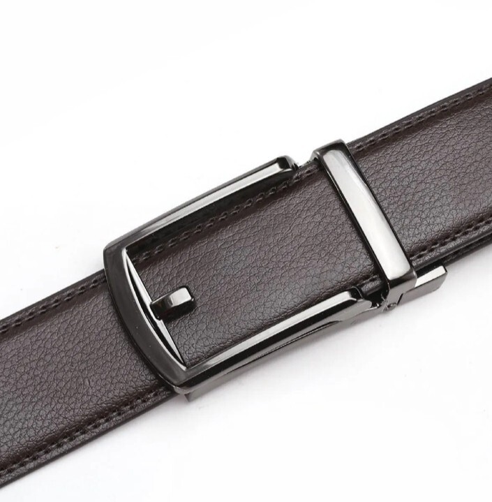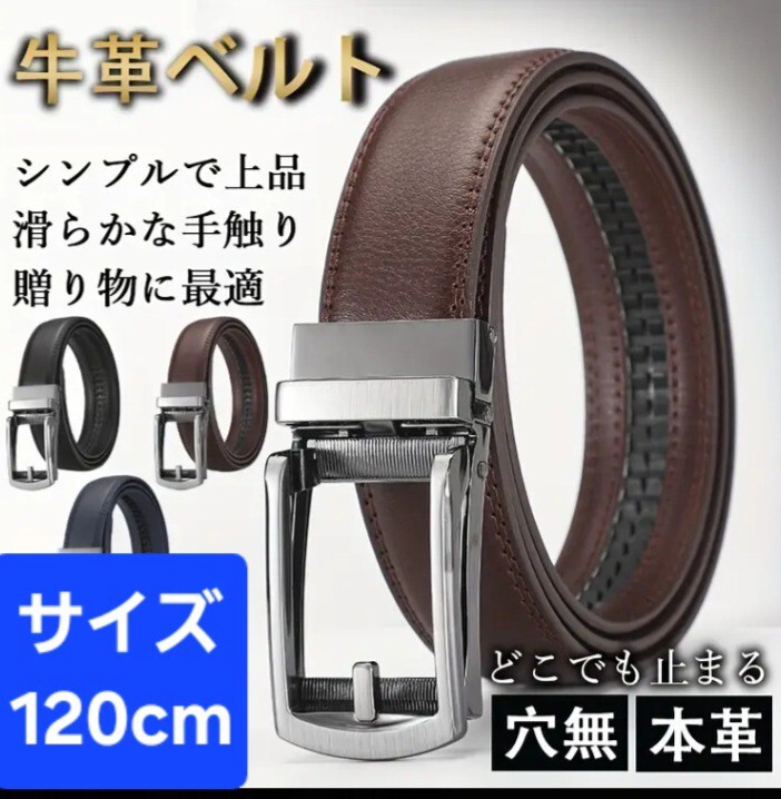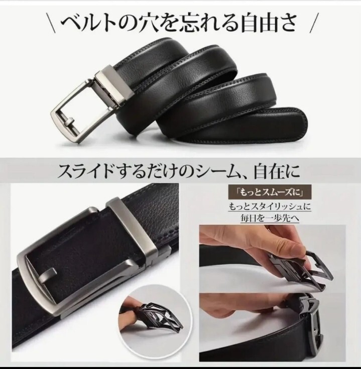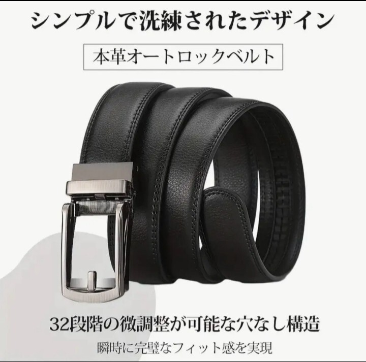 メンズ 革ベルト 自動ロック 穴なし オートロック ベルト ブラウン