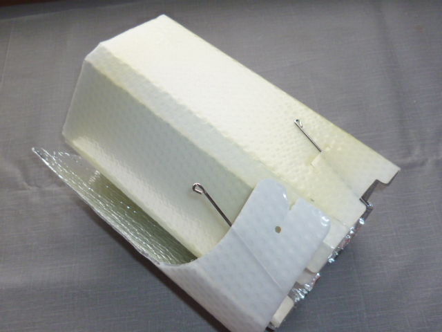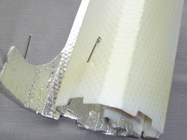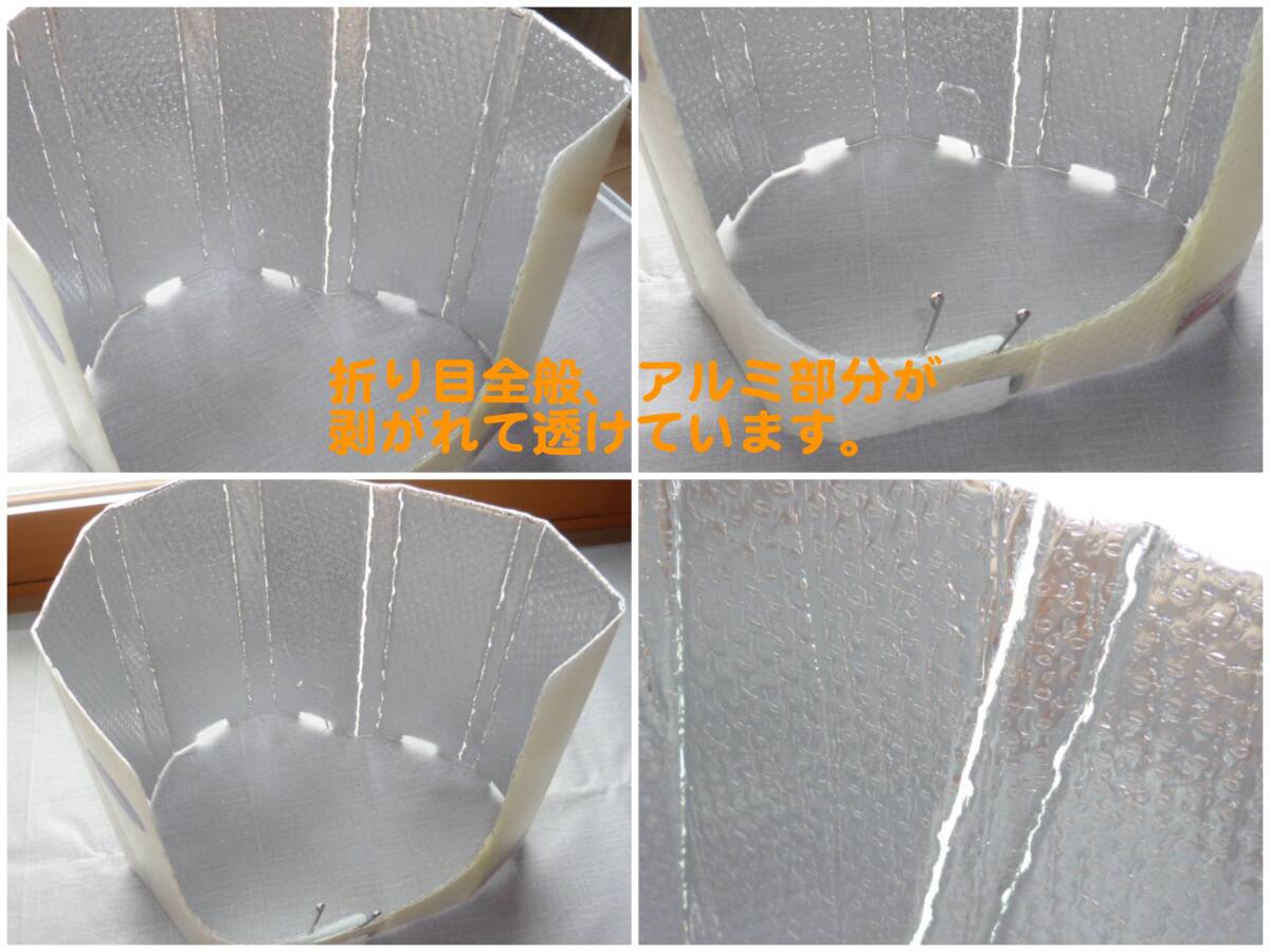 折り目部分のアルミ箔が剥がれて透けています。 |