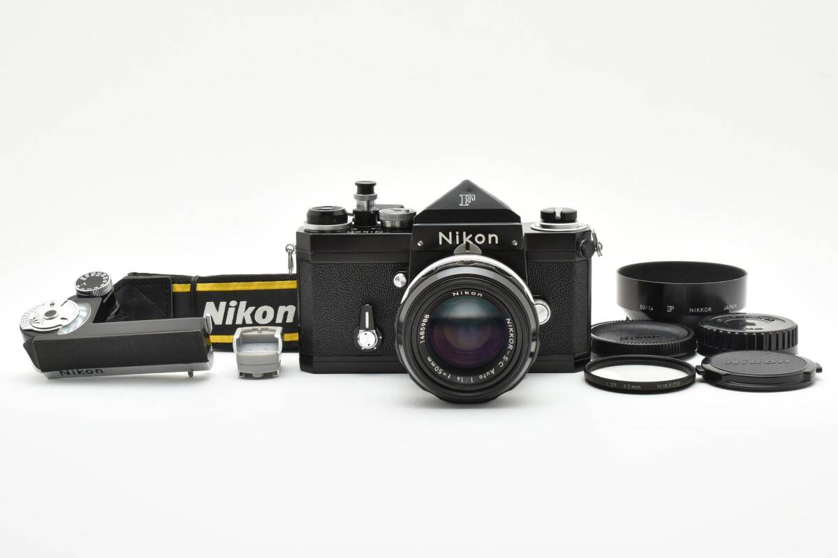 5074 【良品】 Nikon F Eye Level Black Apollo 50mm F1.4 with Accessories ニコン MFフィルムカメラ