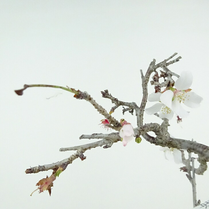 | ■植物ですので撮影時期や季節によって剪定などの手入れにより写真から変化がございます。撮影日をご確認のうえ、ご注文ください。 【桜盆栽】 桜の原種は11種確認されており、これらの変性や交雑、園芸種など数えきれないほど沢山の種類や品種があります。一重咲き、八重咲き、枝垂れなど、日本国内だけでも600種以上が確認されています。 信濃寒桜は白~淡い桃色の小輪の花。秋頃から春にかけてぽつりぽつり少しずつ開花します。  |