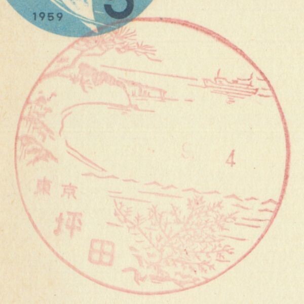 風景印☆平日・旧印☆東京・坪田・S34.9.4?