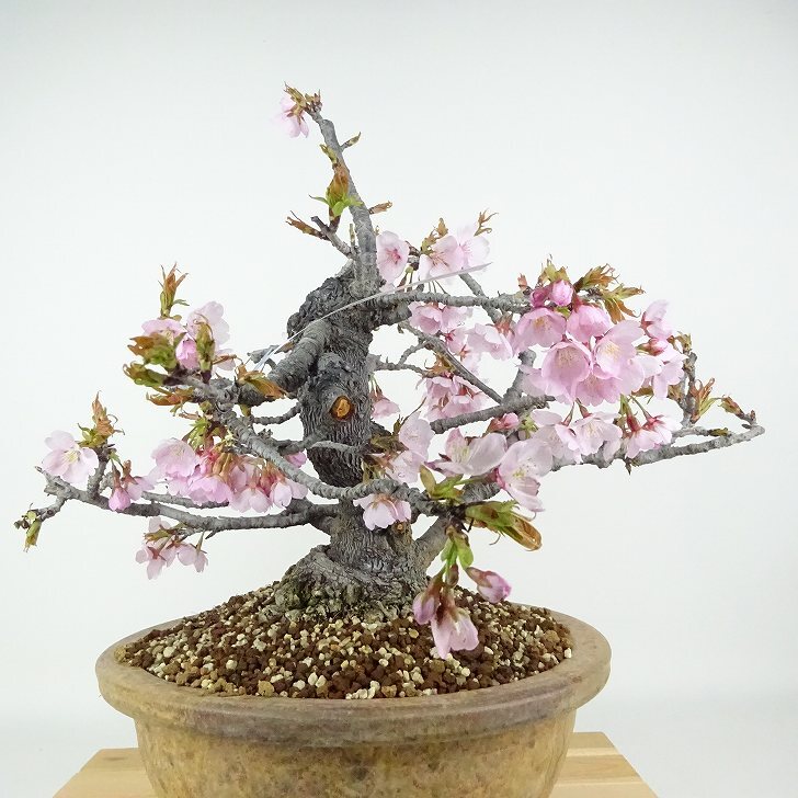 | ■植物ですので撮影時期や季節によって剪定などの手入れにより写真から変化がございます。撮影日をご確認のうえ、ご注文ください。 【桜盆栽】 桜の原種は11種確認されており、これらの変性や交雑、園芸種など数えきれないほど沢山の種類や品種があります。一重咲き、八重咲き、枝垂れなど、日本国内だけでも600種以上が確認されています。 〈寒桜〉 早咲きの桜で、淡紅色の花。 寒さに負けずに花を咲かせることから「寒桜」といいます。 小ぶりな花ながらも枝いっぱいにピンク色の花咲きます。 |