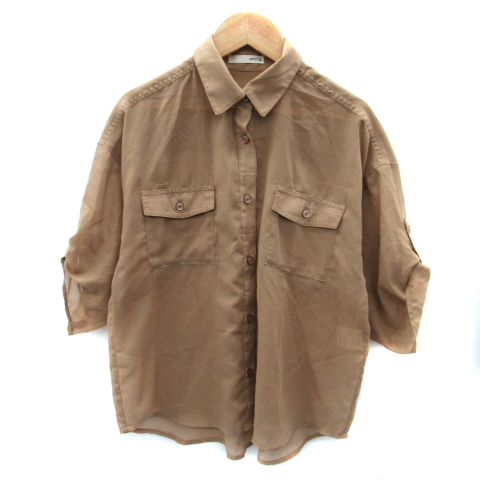 マウジー MOUSSY シャツ ブラウス 半袖 シアー F ベージュ /SM31 レディース