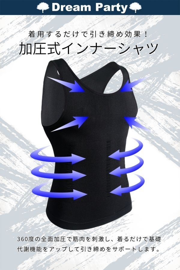 【強力!メンズ加圧タンクトップ】360度の全面加圧で筋肉を刺激し、着るだけで基礎代謝機能を上げて筋肉のつきやすい身体に。シックスパックを手に入れたい本格派は勿論、メンズのすっきり引き締まった理想のボディをメイクします。