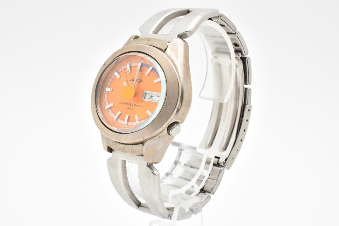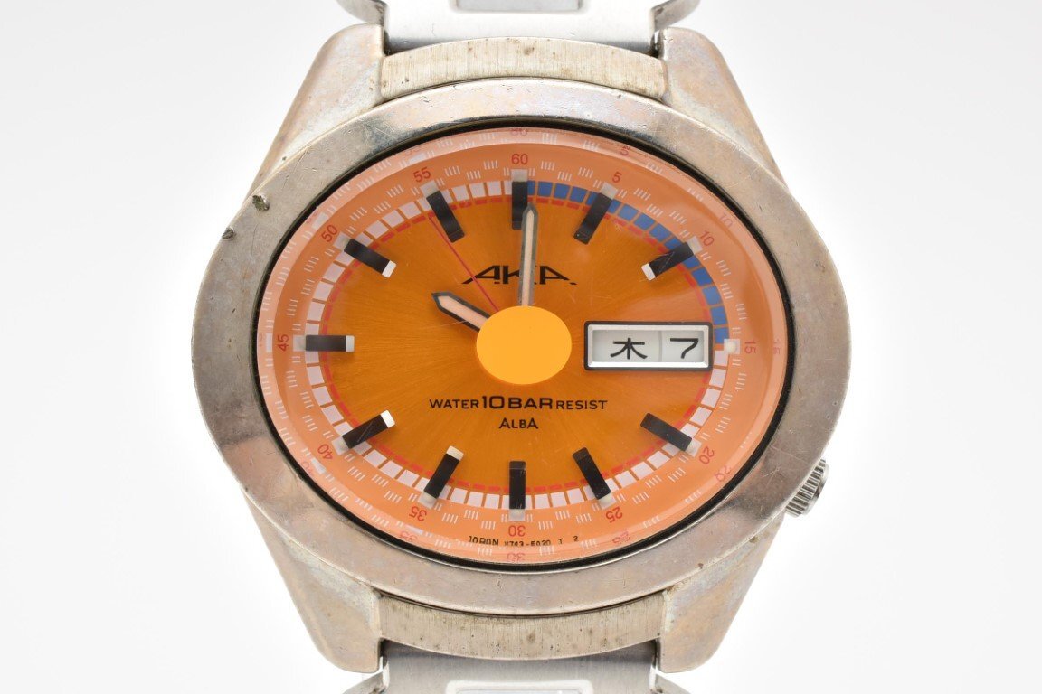 SEIKO セイコー ALBA アルバ AKA V743-5A10 クォーツ QZ デイデイト オレンジ文字盤 アナログ 3針 腕時計 メンズ
